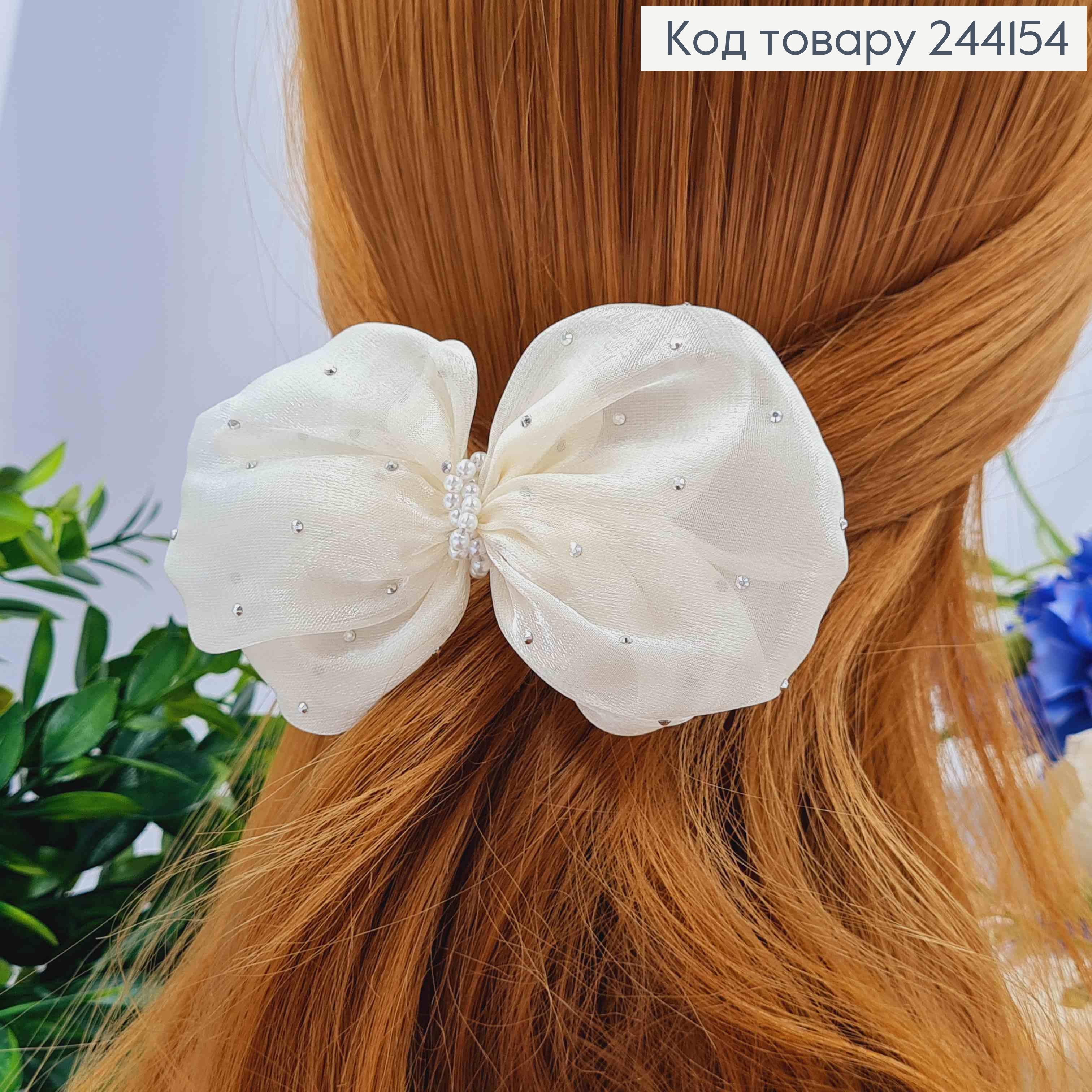 Бант БЕЛОГО цвета со стразами, на заколке 5,5, ткань атлас, размер 10*6,5см, Украина. 276163 фото
