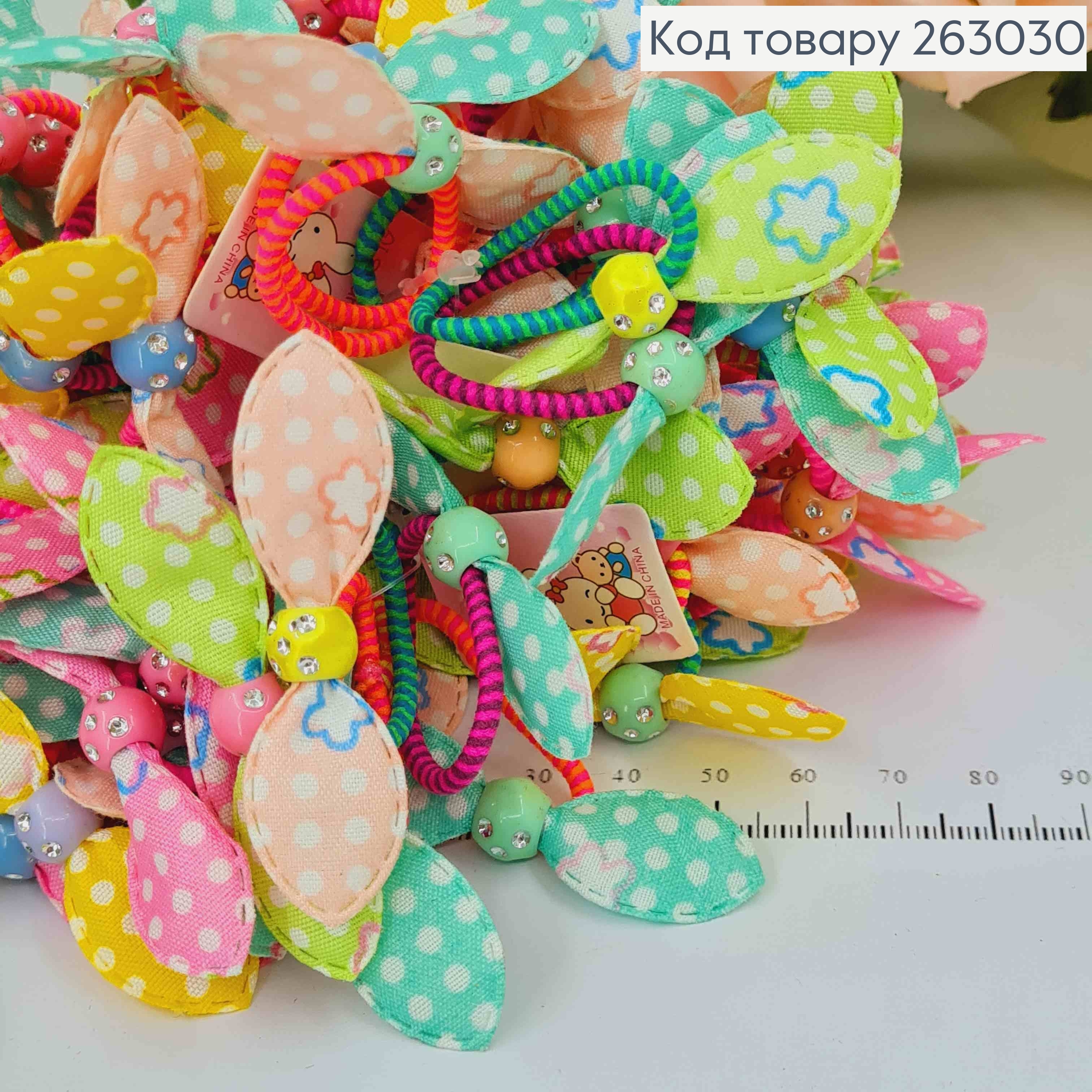 Резинка детская, 100шт, яркая цветная, Солоха с бусинкой в камнях