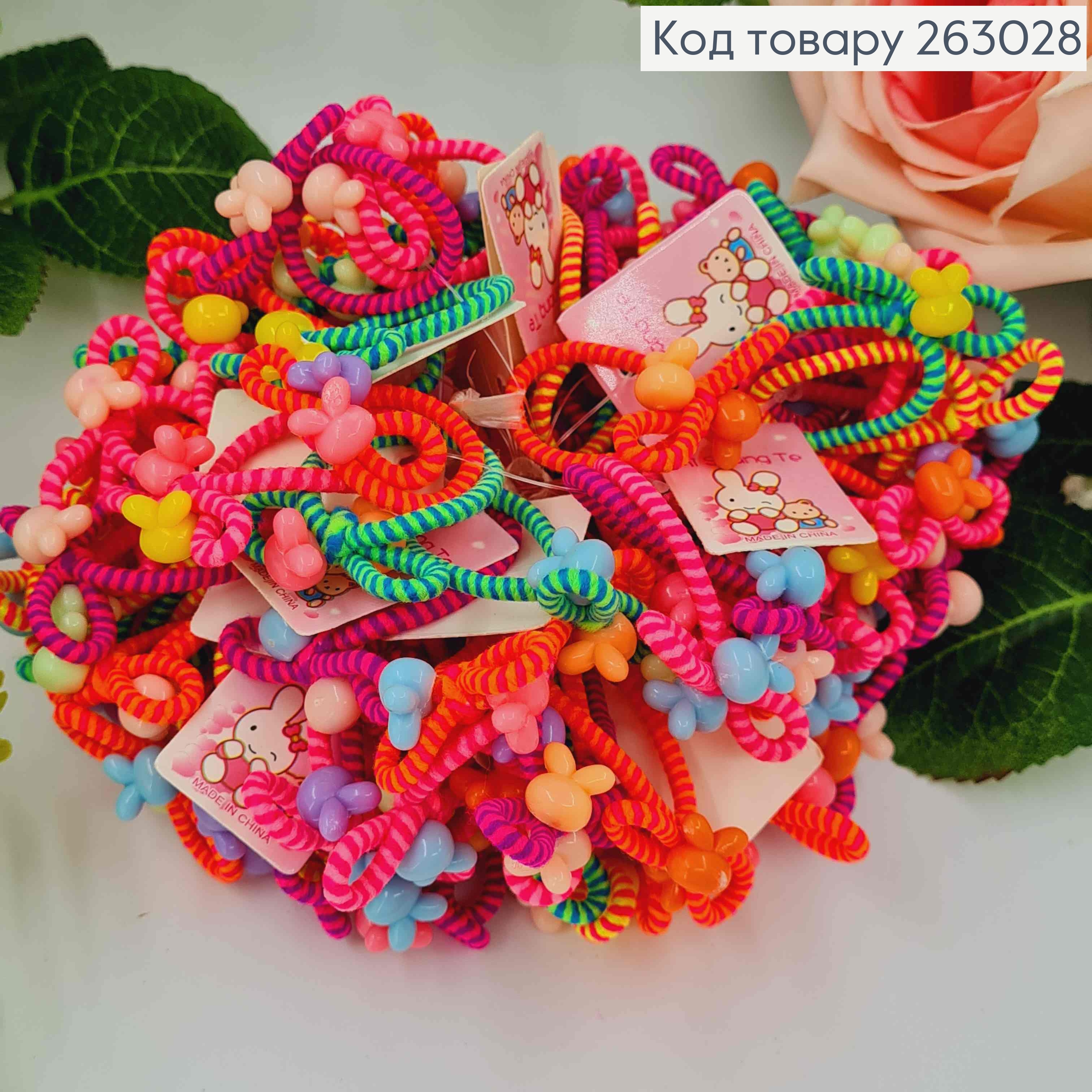Набор резинок (20шт), "Цветок" с Бусинкой, Пастельные цвета, резинка 4см, зайчонок 3,5*3,5см 261379 фото