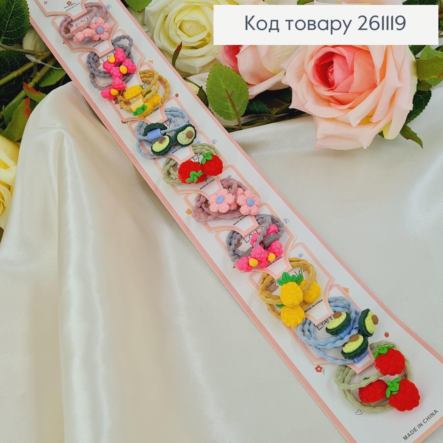 Резинка детская Фрукты, Цветы в асорт. 30шт