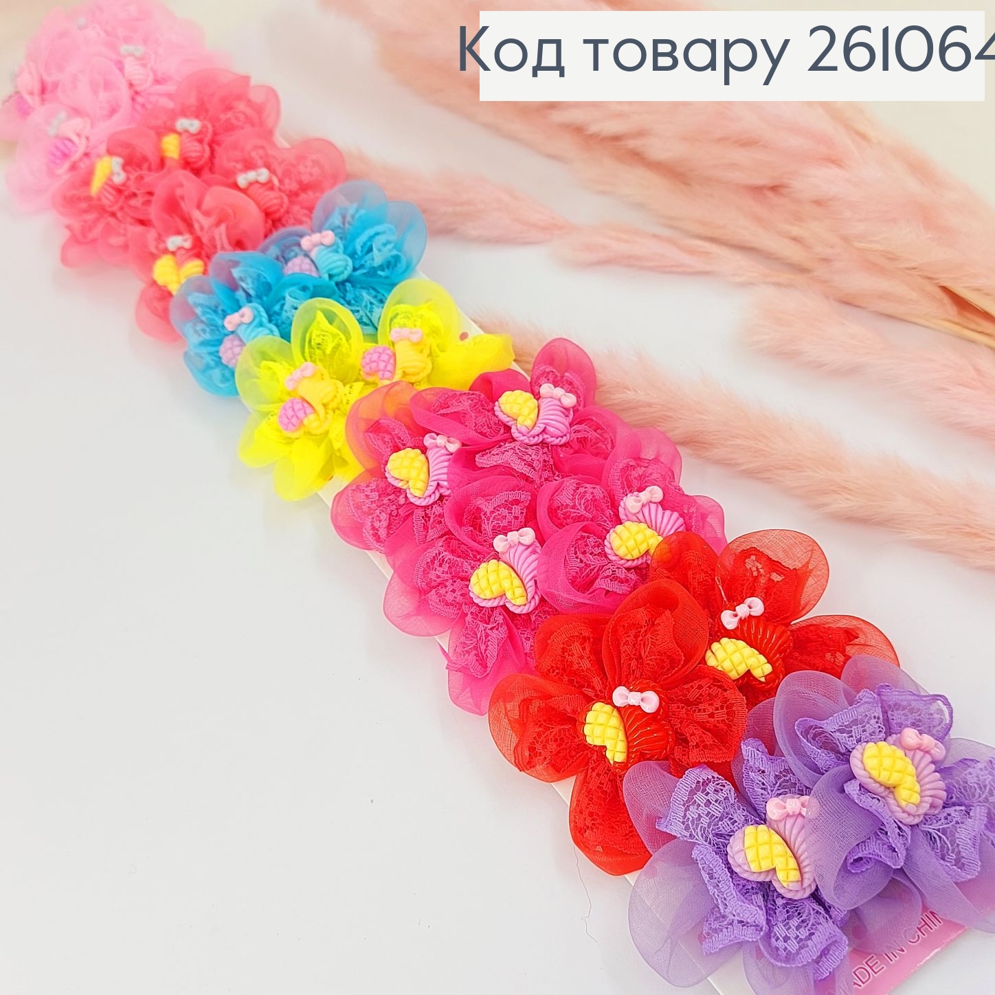 Резинка детская цветная Цветочек с бабочкой 20 шт/уп.