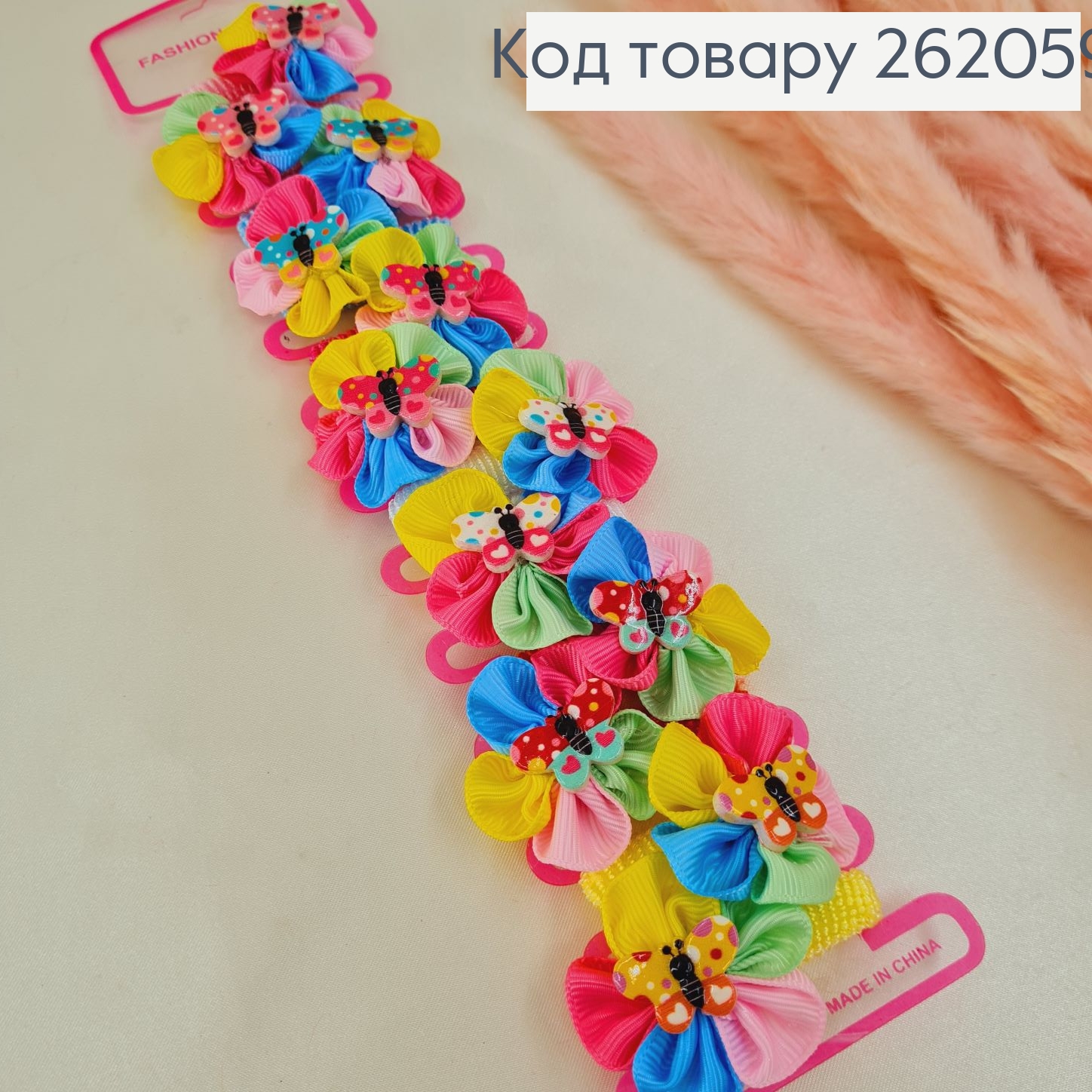 Набор резинок (20шт), "Бабочки" с жемчужинами, пастельные цвета, резинка 3см, бабочки 4*3см. 261382 фото