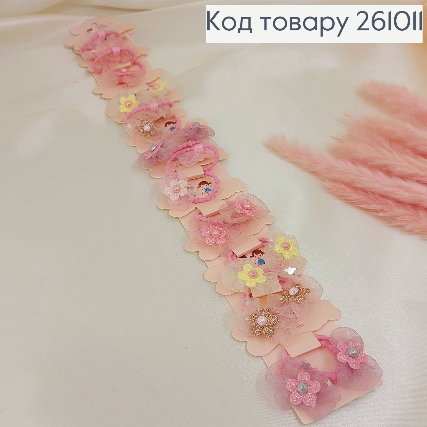 Набор резинок (20шт), "Бабочки" с жемчужинами, пастельные цвета, резинка 3см, бабочки 4*3см. 261382 фото