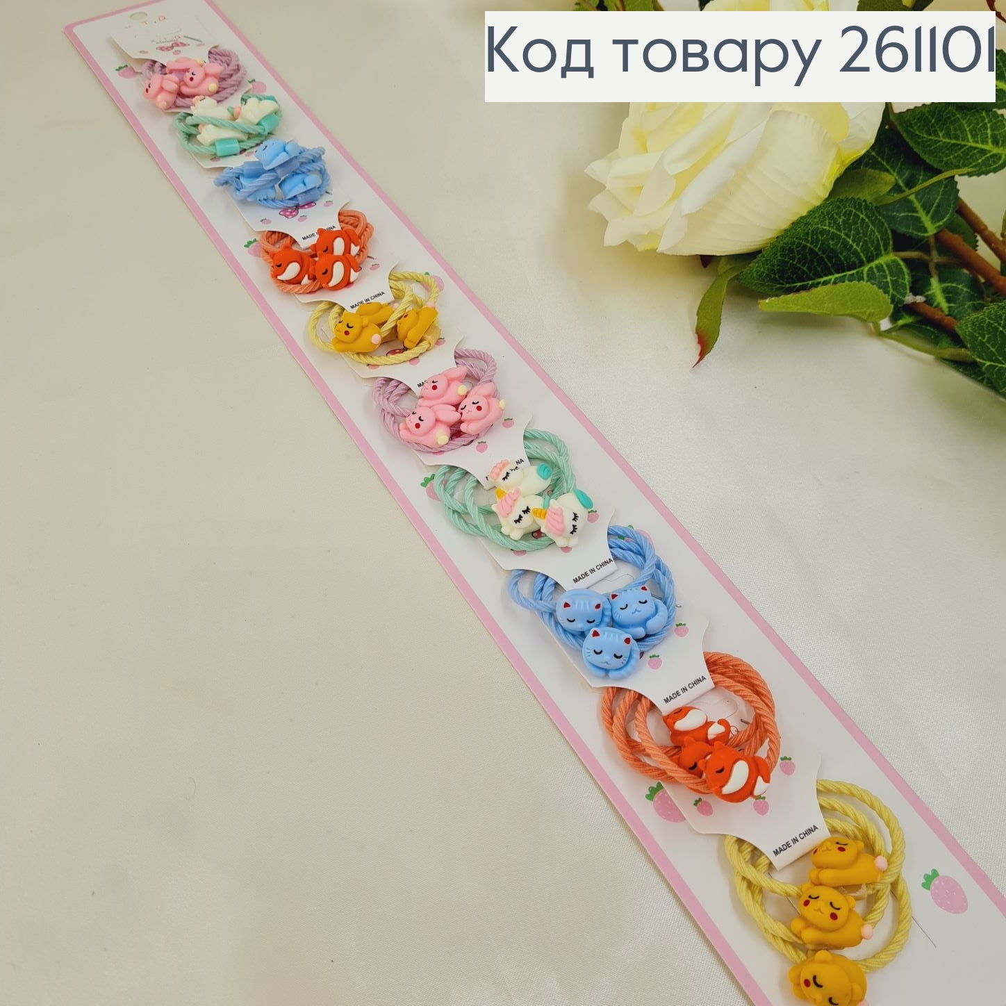 Набор резинок (20шт) "Животные" с бантиком, Пастельные цвета, резинка 3см, животные 2,5см 261387 фото