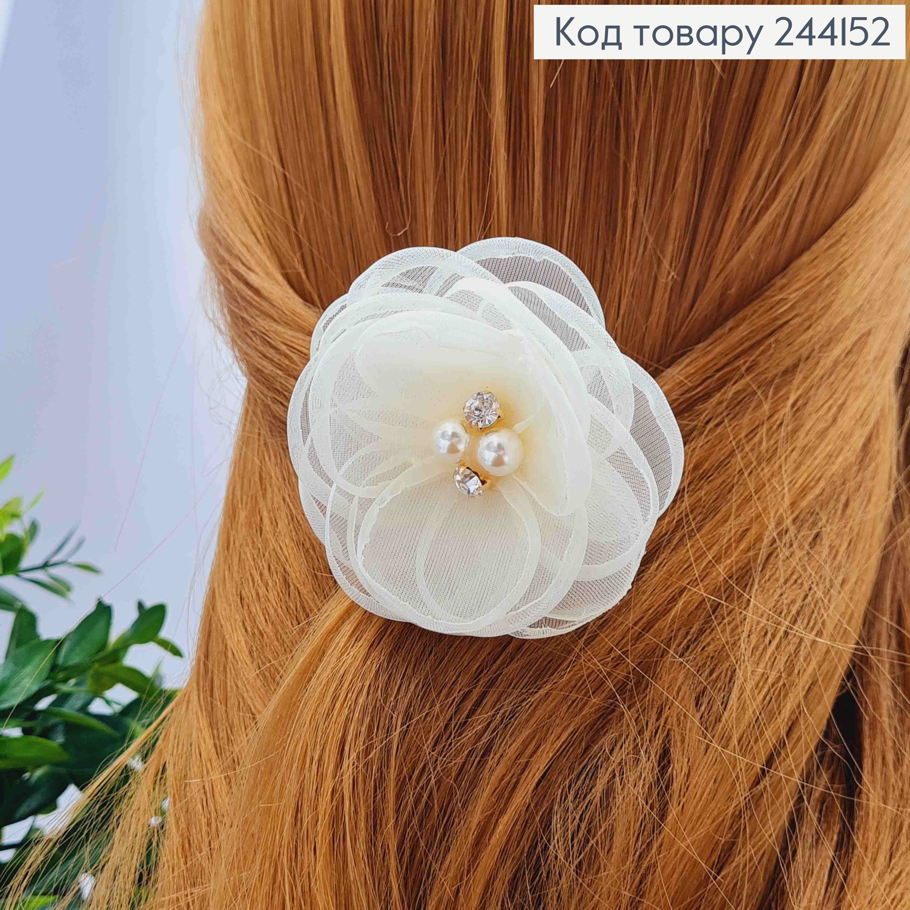 Резинка-детская, "ЦВЕТОК" с бусинками и камешками, 6,5см, цвета Айвори, ручная работа, Китай