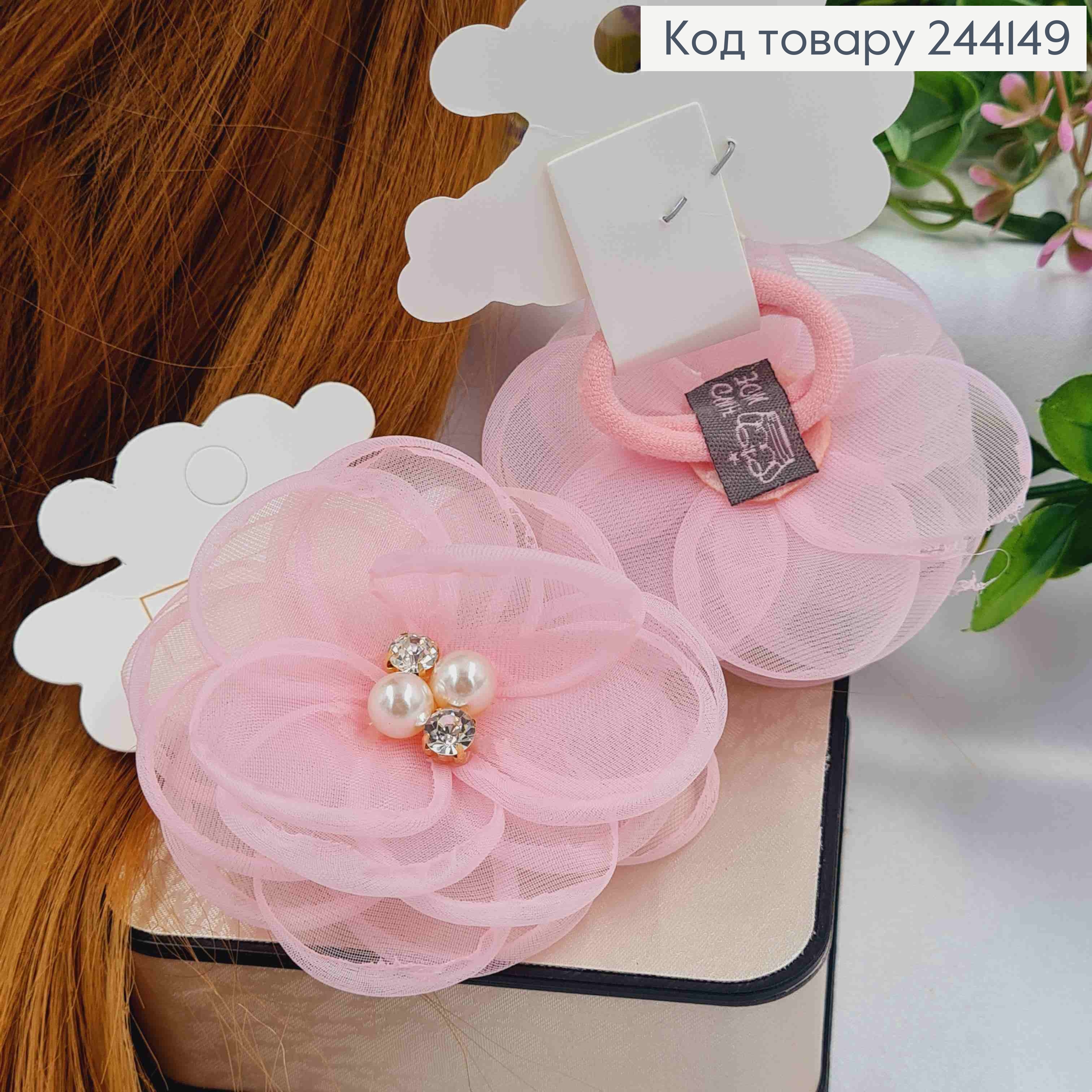 Резинка-детская, "ЦВЕТОК" с бусинками и камешками, 6,5см, Розового цвета, ручная работа, Китай