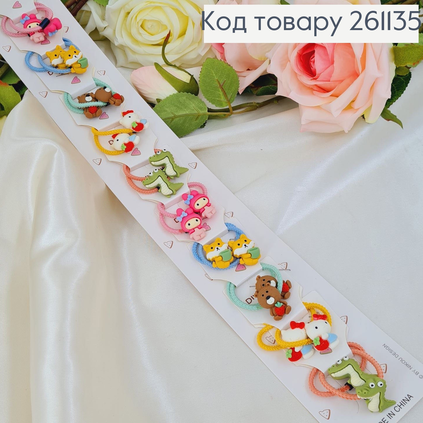Набор резинок (20шт) "Животные" с бантиком, Пастельные цвета, резинка 3см, животные 2,5см 261387 фото