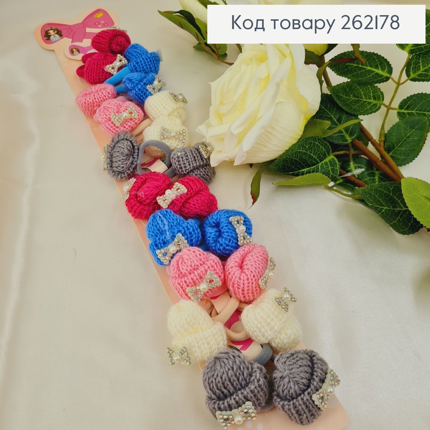 Резинка детская Шапка с бантиком в камнях цветная 20 шт/уп
