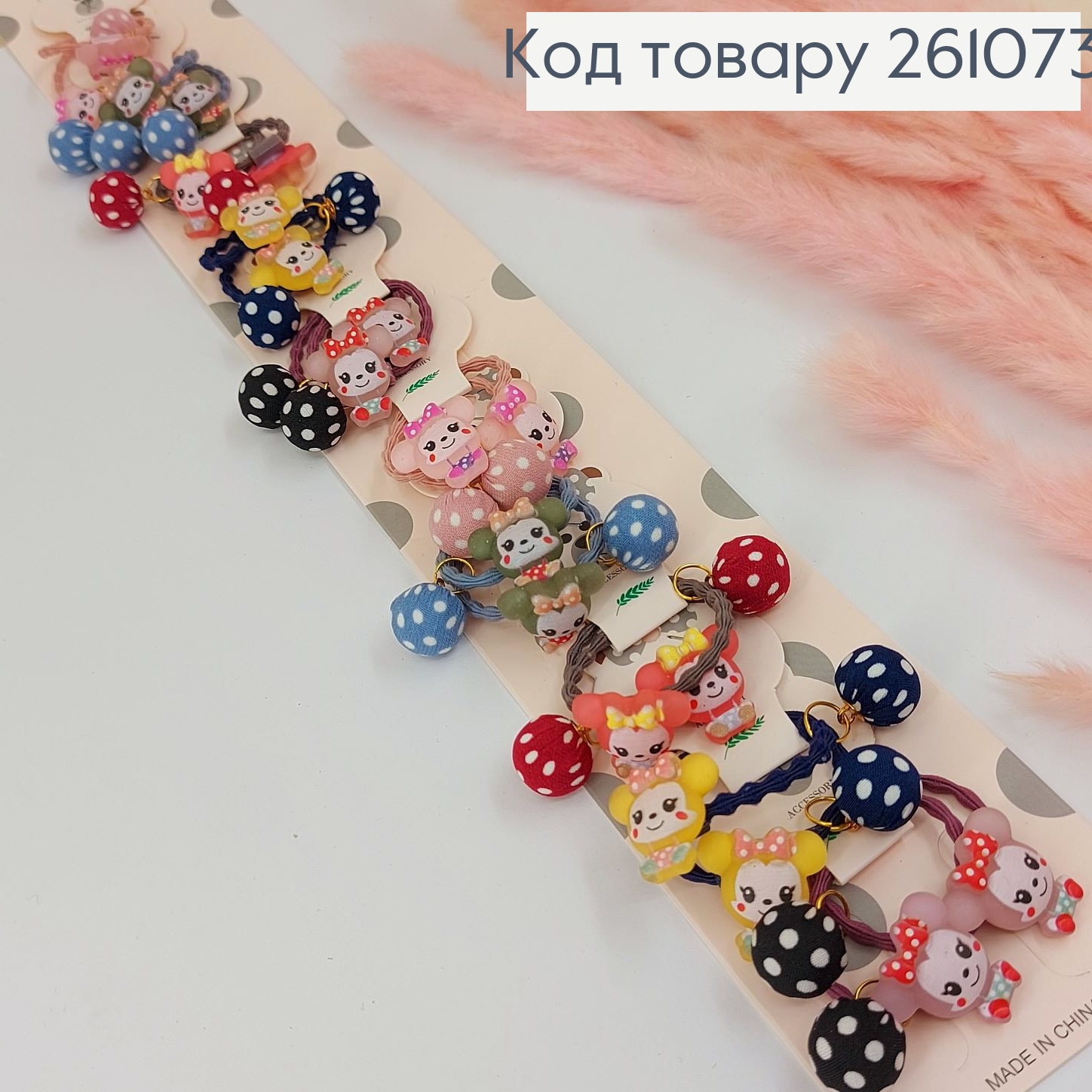Набор резинок (20шт) "Мини Маус" с жемчужиной и пайетками,Пастельные цвета, резинка3см, МиниМаус3,5см 261385 фото