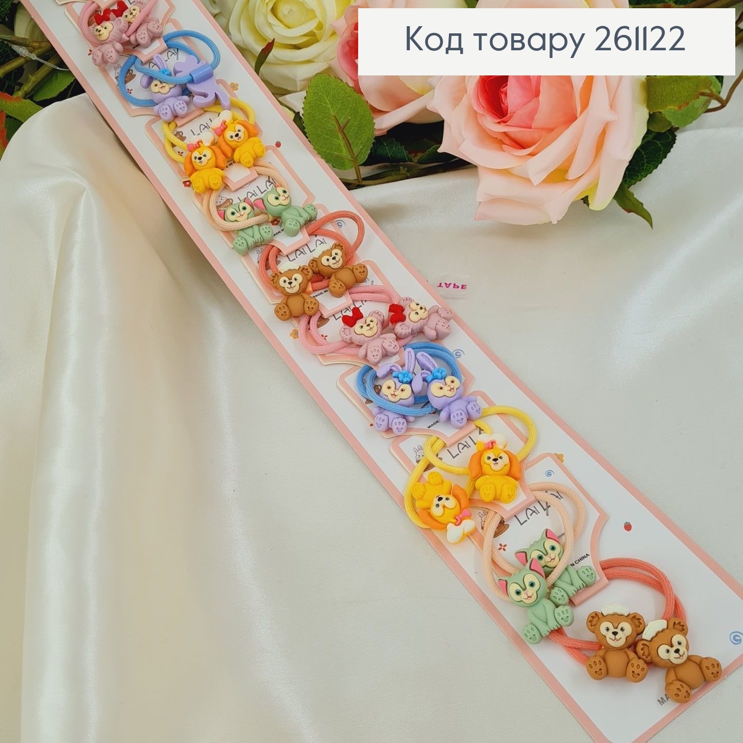 Набор резинок (20шт) "Животные" с бантиком, Пастельные цвета, резинка 3см, животные 2,5см 261387 фото