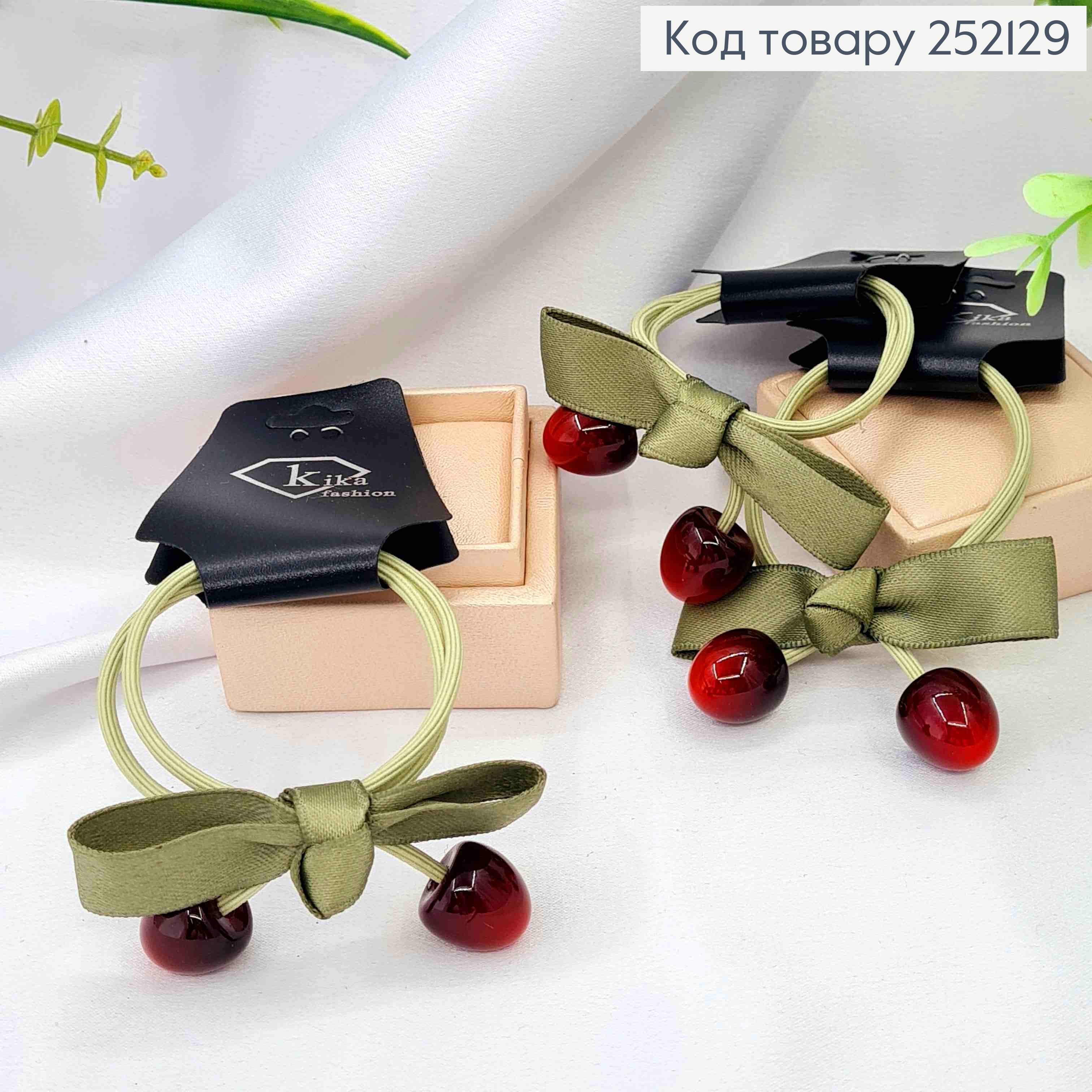 Резинка детская с черешками и бантиком, диаметр 5см, цвета хаки.