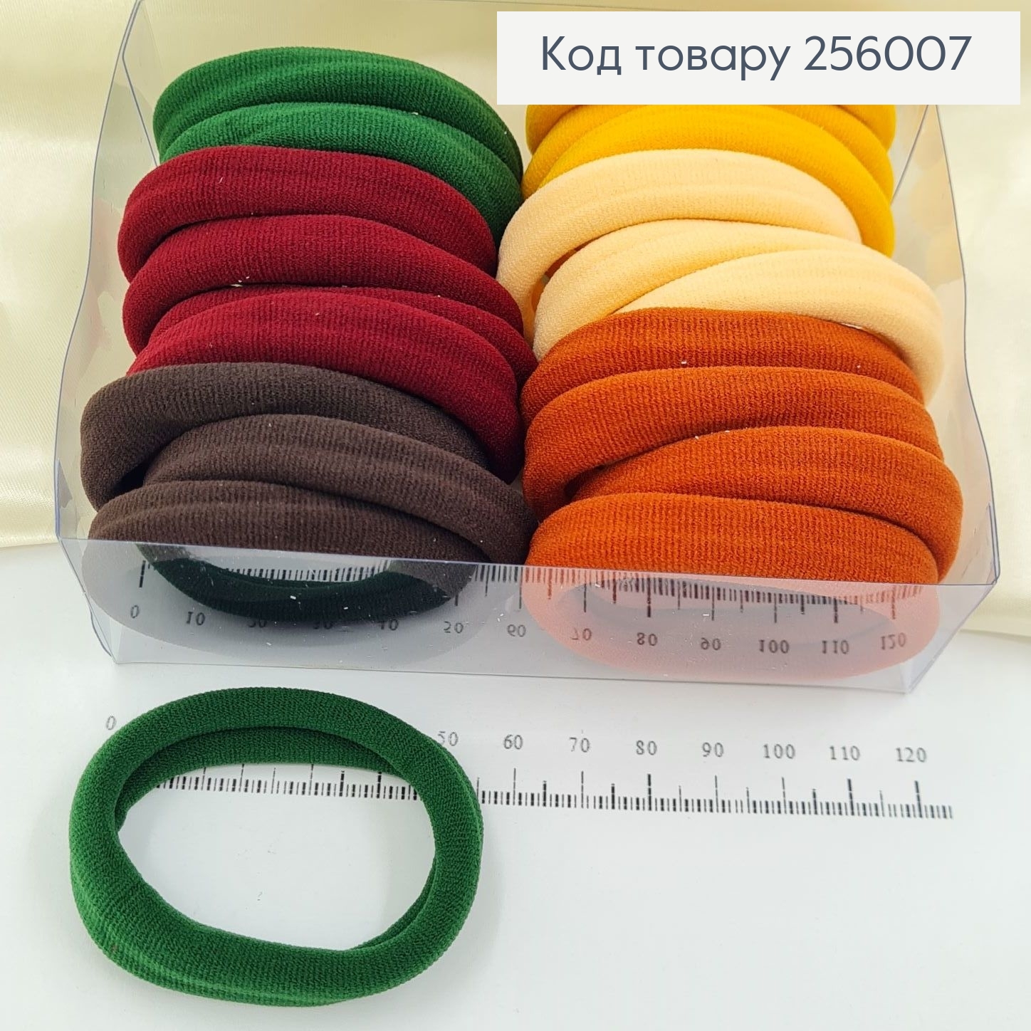 Размер можете представить с помощью линейки, на которой сфотографированы резинки