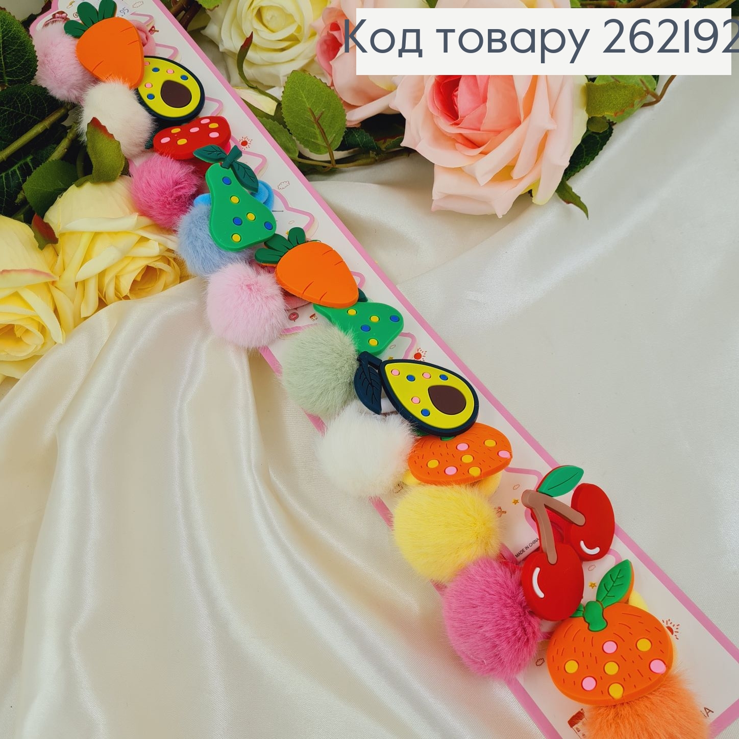 Резинка микрофибра с силиконовими Фруктами и пушком , 20шт
