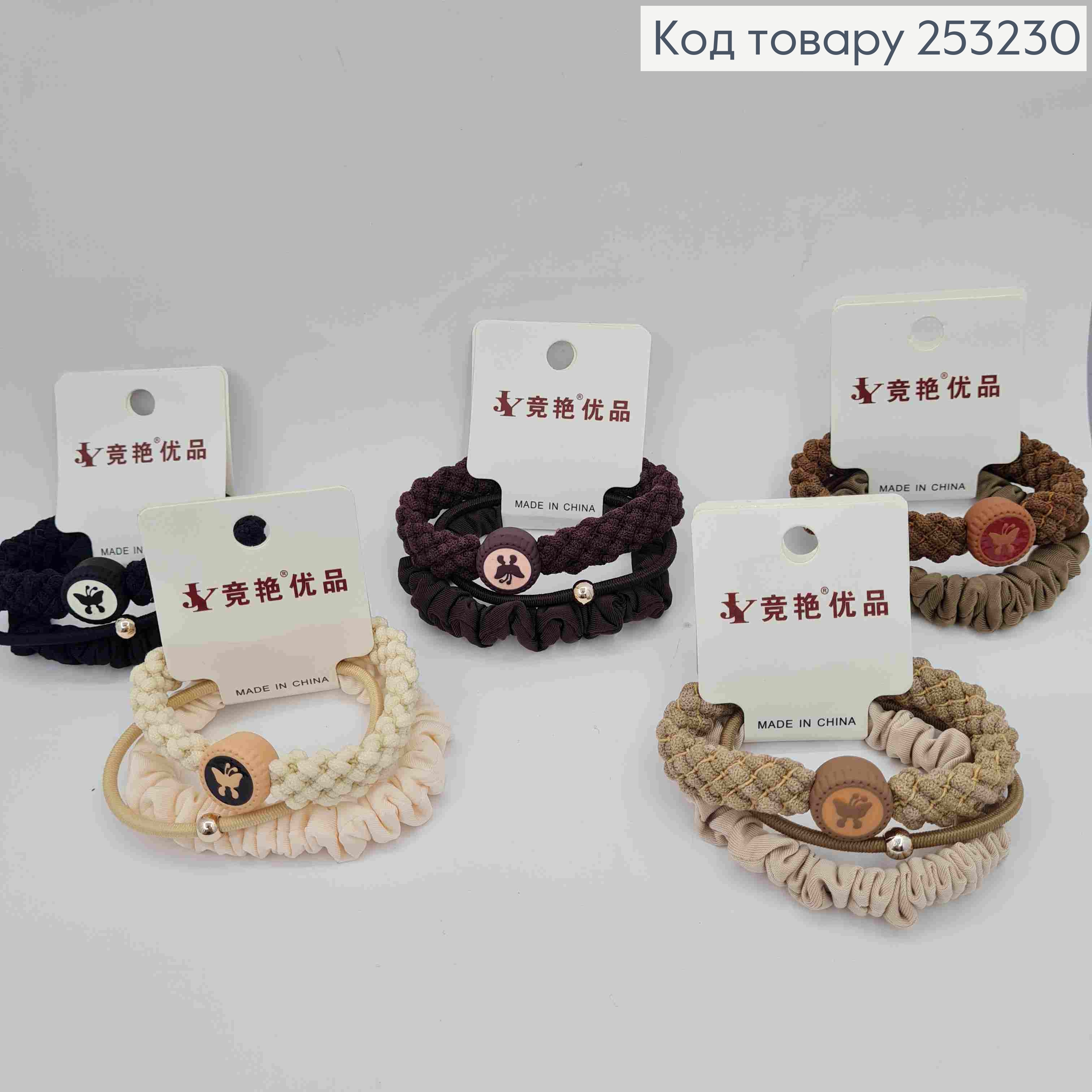 Резинка на планшетке (3шт) Шнурок/Жатка/Плетеная с Брошкой с Бабочкой, Паастельные цвета, диам 6,5см
