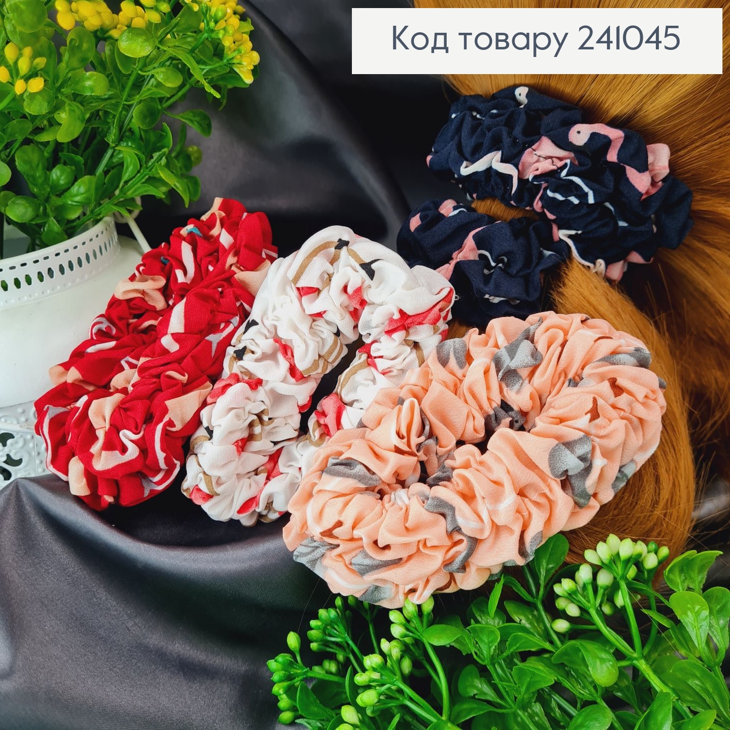 Резинка жатка-объемная с принтом "Цветы", Пастельные цвета в ассортименте. 252140 фото
