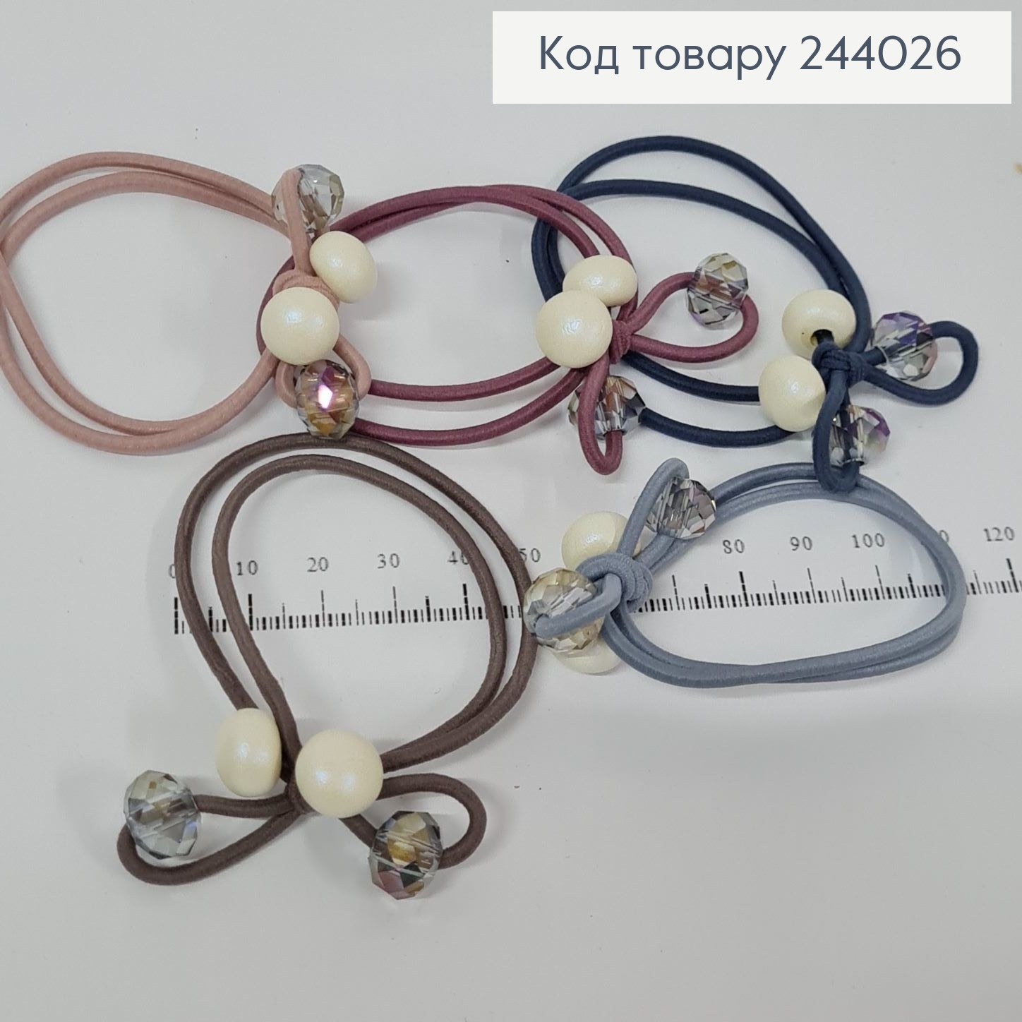 Резинка на планшетке (3 шт) Шнурок с Бусинами, Пастельные цвета, диаметр 5,5см 253231 фото