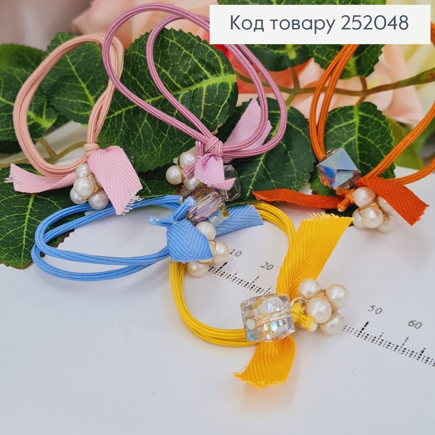 Резинка шнурок с Бантиком, бусиной и камнем, Цвета в ассортименте, резинка 5,5см, бант 3,5см 253232 фото