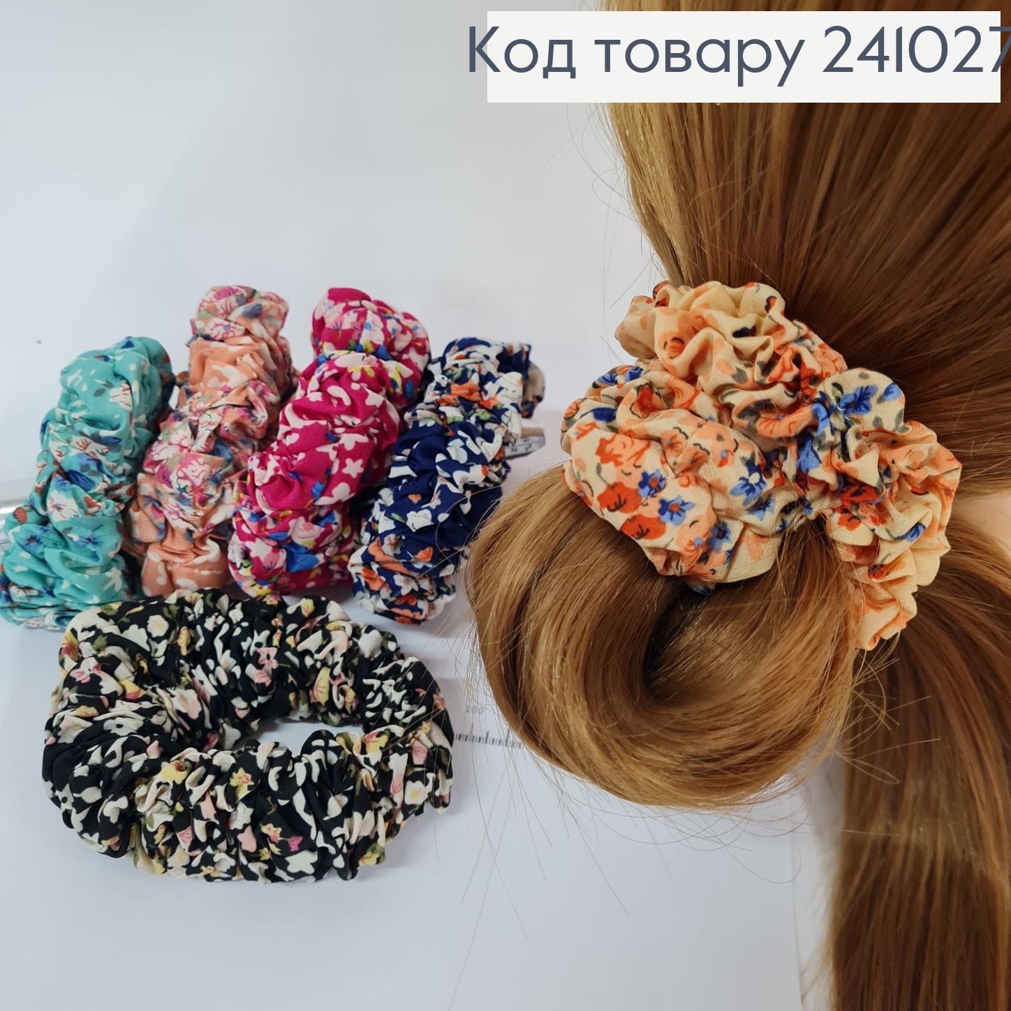 Резинка жатка-объемная с принтом "Цветы", Пастельные цвета в ассортименте. 252140 фото