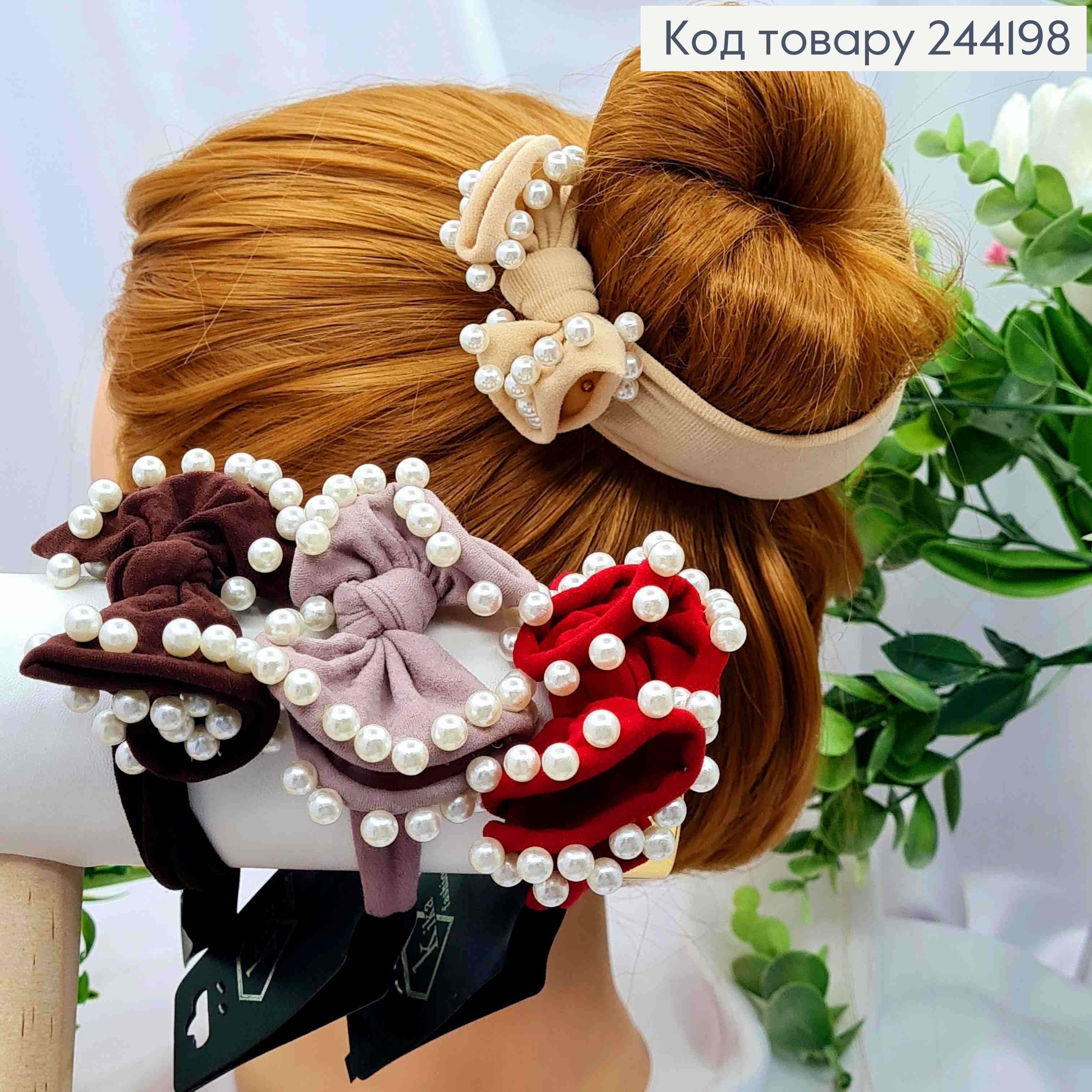 Резинка с Жемчужинами на Бантику, 4,5см, Цвета в ассортименте (качественный капрон)