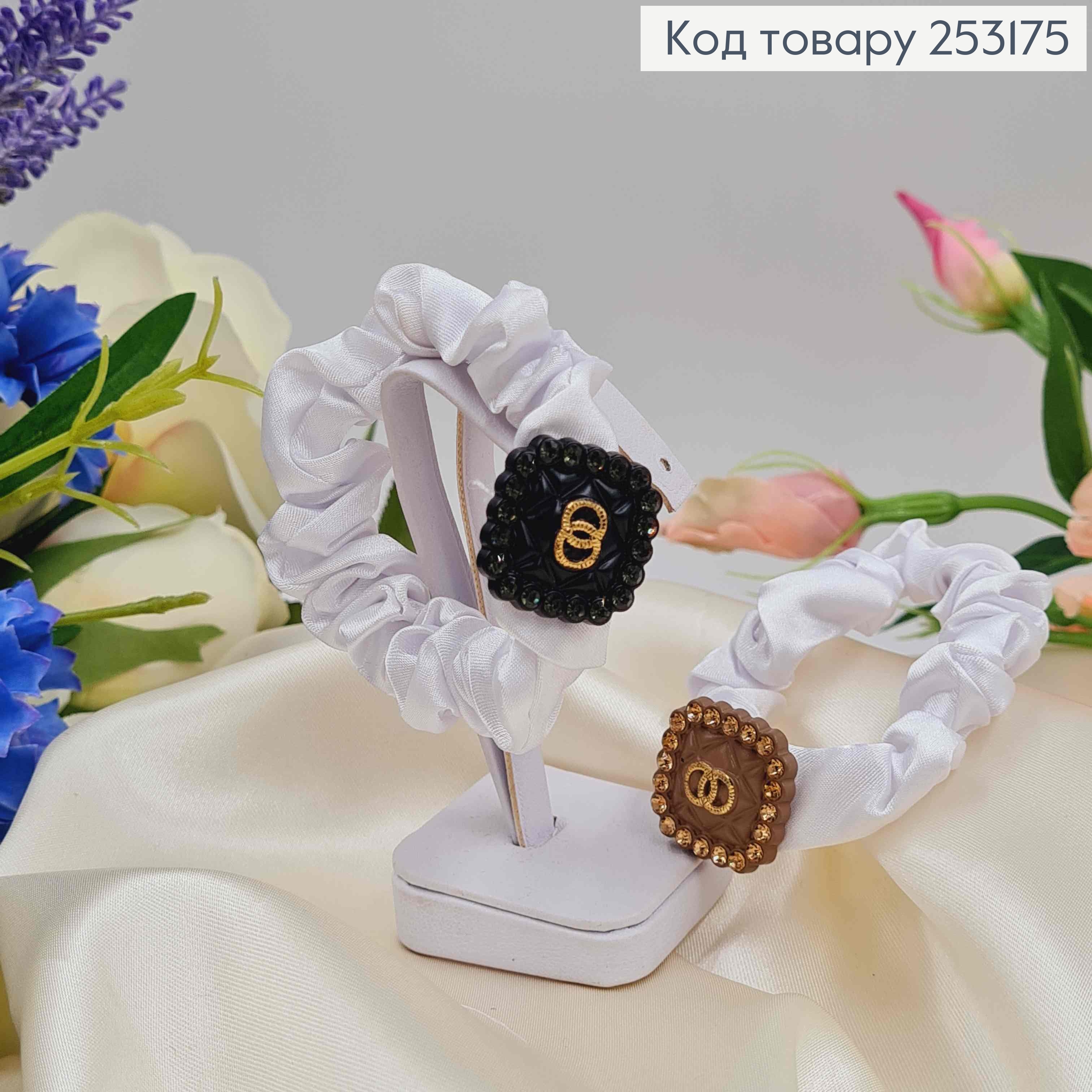 Резинка жатка 6см, Белого цвета, с квадратной пластинкой "Гуччи" с камешками