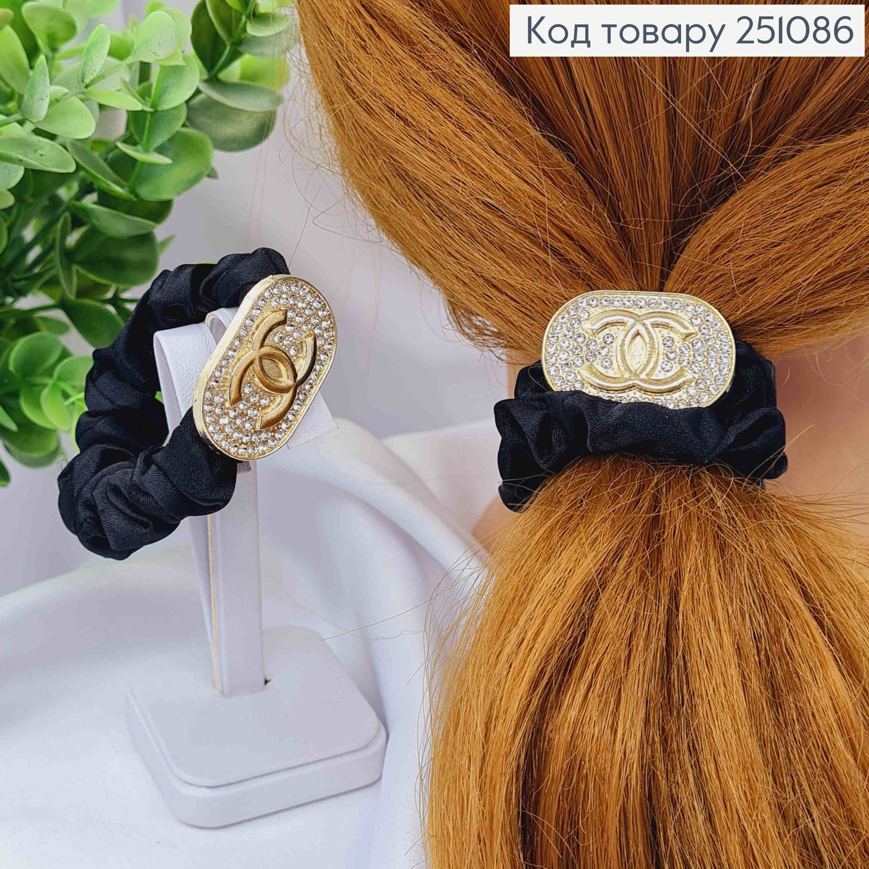 Резинка жатка Черного цвета, с пластиной "Шанель" в камнях, 6см