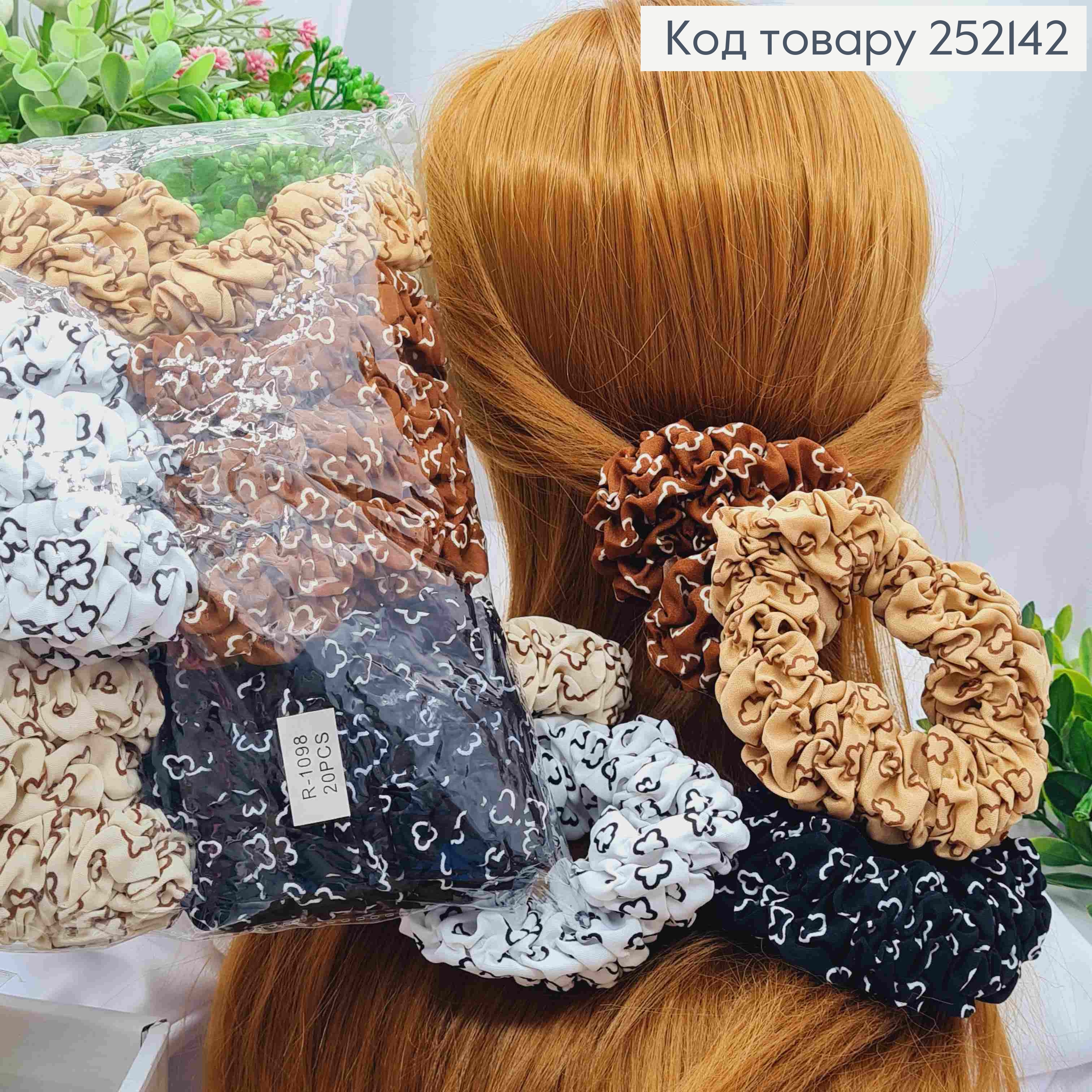 Резинка жатка-объемная с принтом "Цветы", Пастельные цвета в ассортименте. 252140 фото