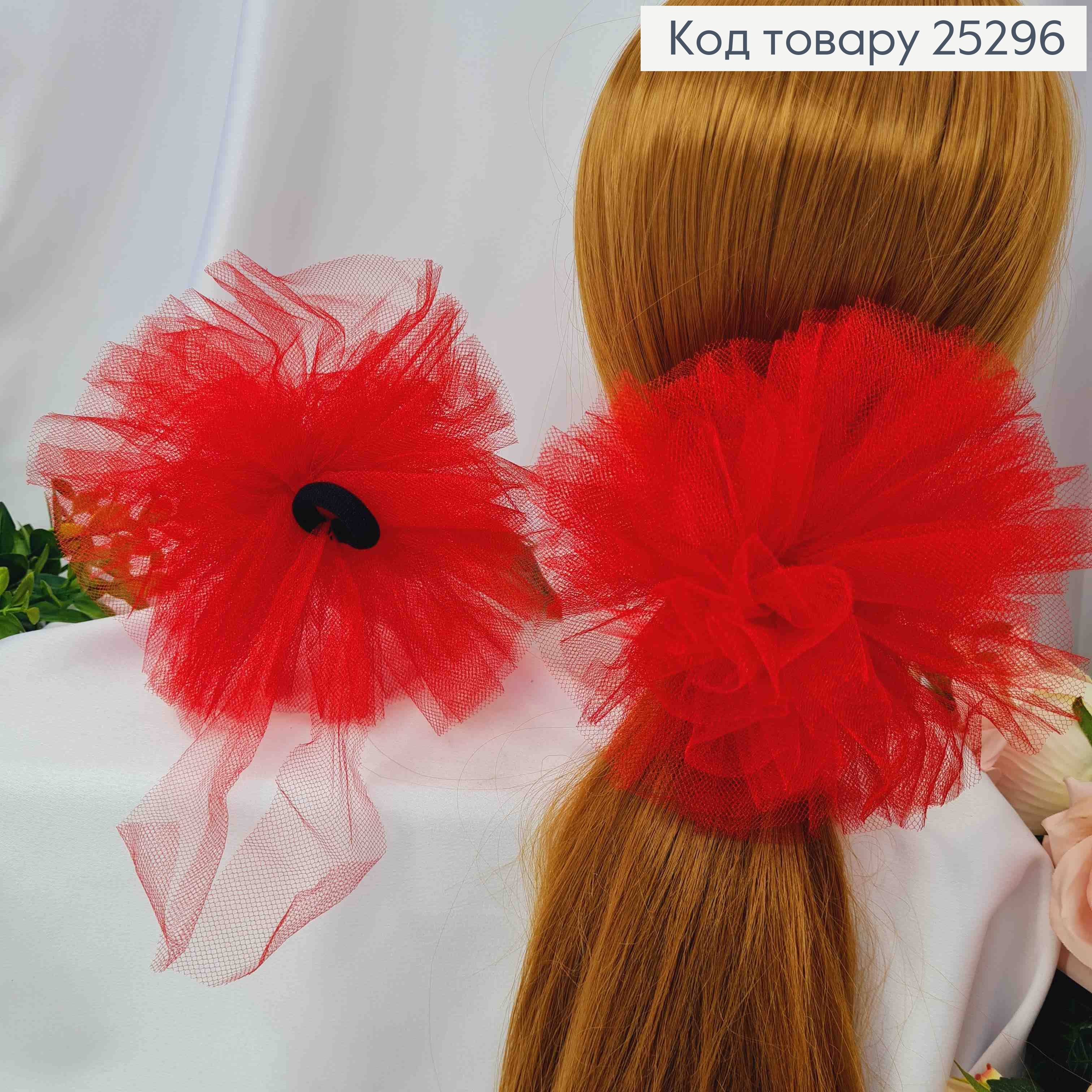 Резинка + завязки, БАНТ фатиновый, красного цвета, 15см, Ручная работа
