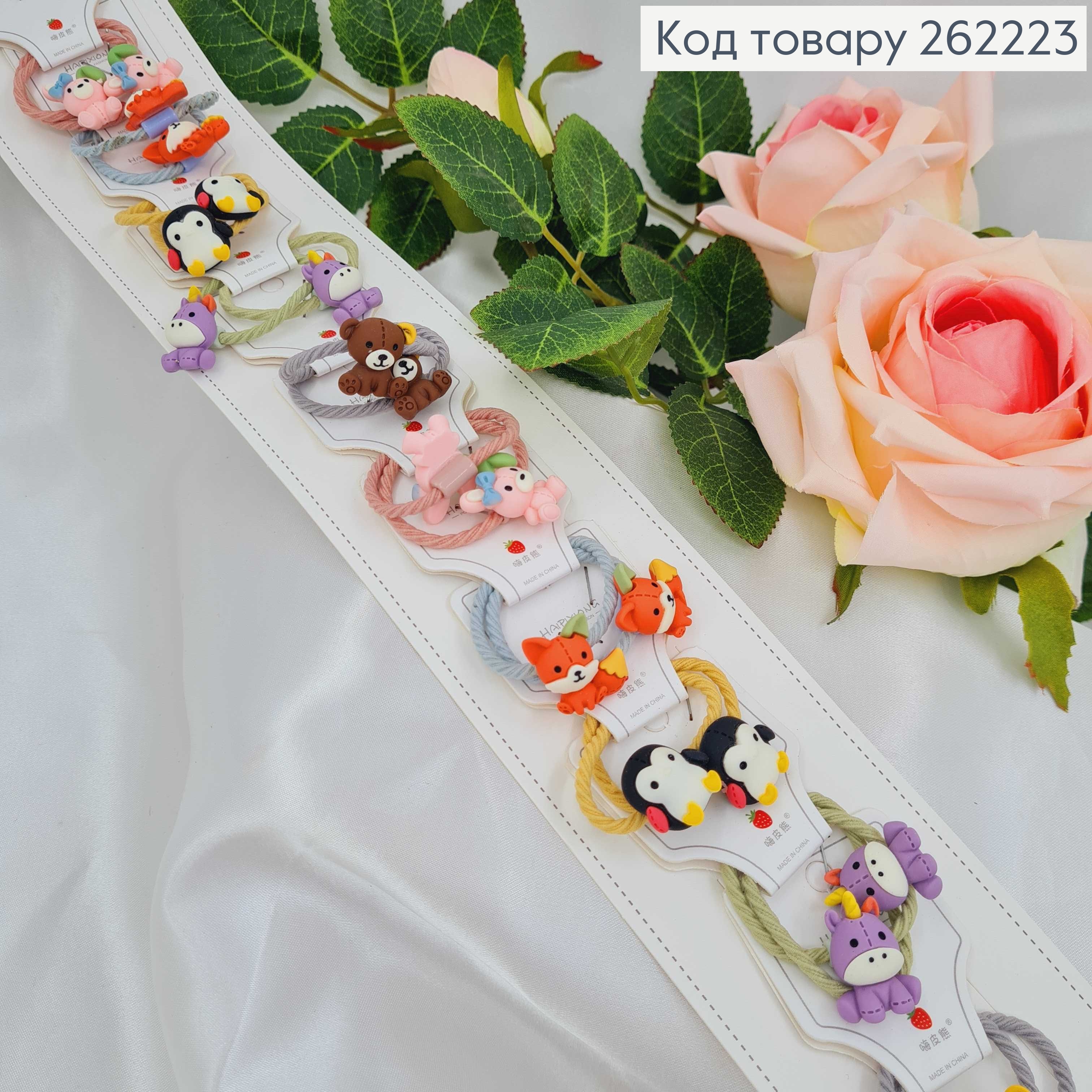 Набор резинок (20шт) "Животные" с бантиком, Пастельные цвета, резинка 3см, животные 2,5см 261387 фото