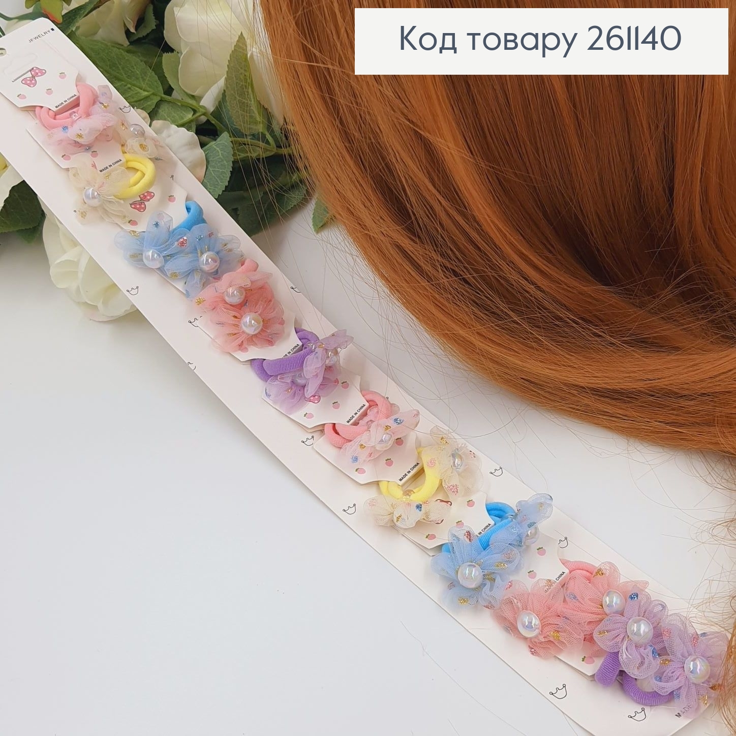 Набор резинок (20шт), "Бабочки" с жемчужинами, пастельные цвета, резинка 3см, бабочки 4*3см. 261382 фото