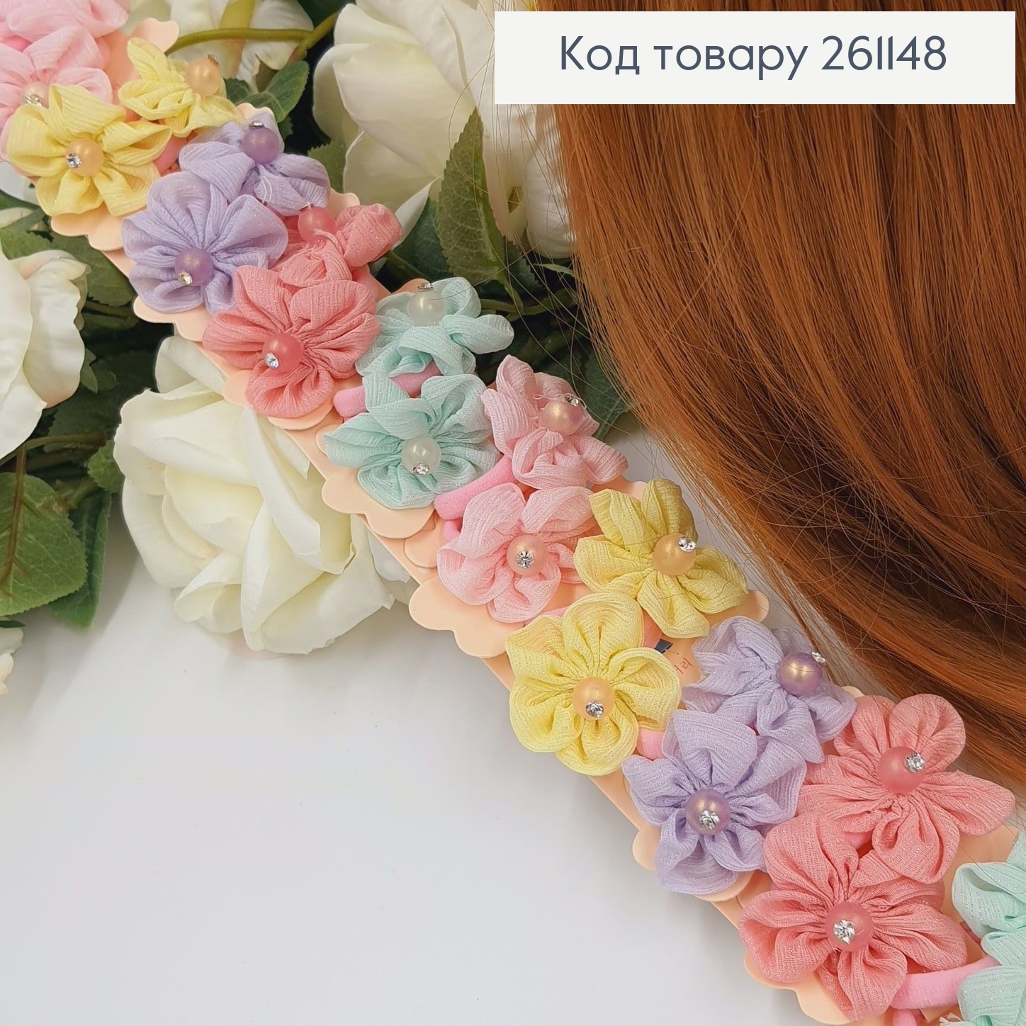 Набор резинок (20шт) "Цветочек", Пастельные цвета, резинка 3см, цветок 2,5см. 261386 фото