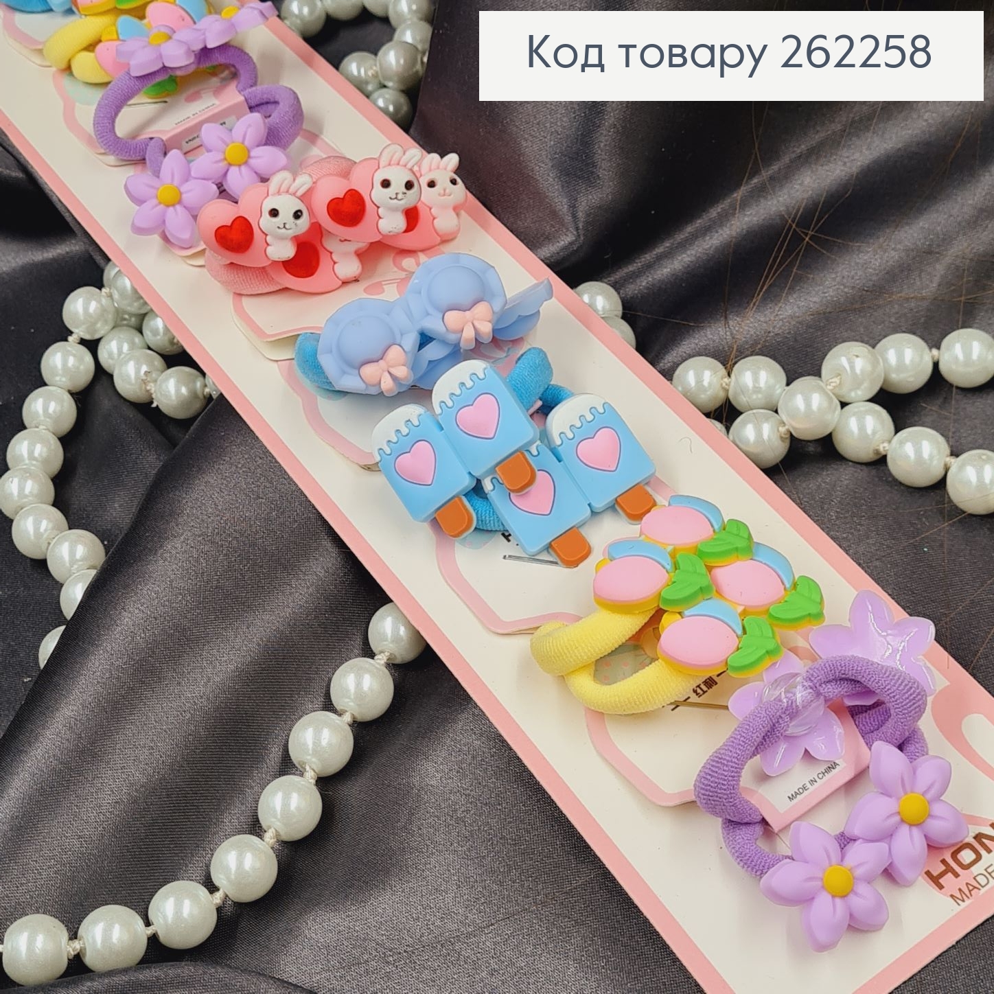 Набор резинок (20шт) "Животные" с бантиком, Пастельные цвета, резинка 3см, животные 2,5см 261387 фото