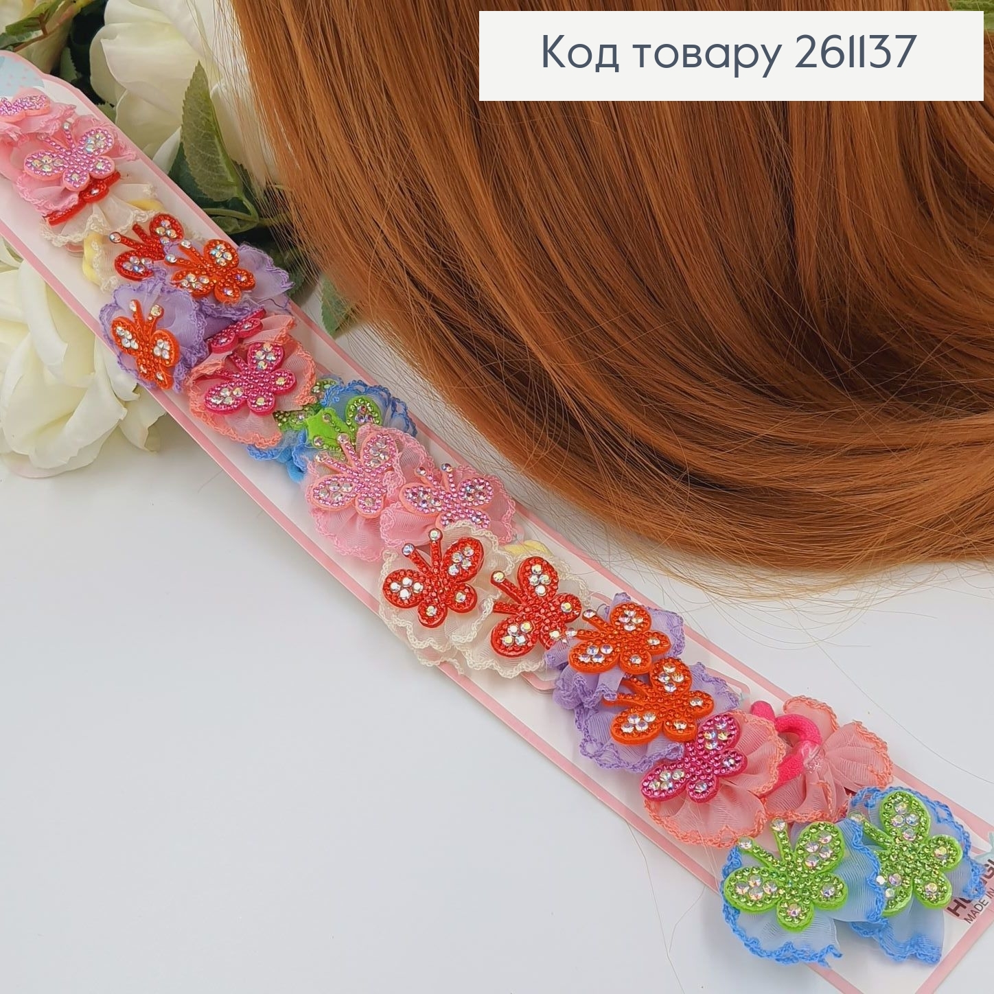 Набор резинок (20шт), "Бабочки" с жемчужинами, пастельные цвета, резинка 3см, бабочки 4*3см. 261382 фото