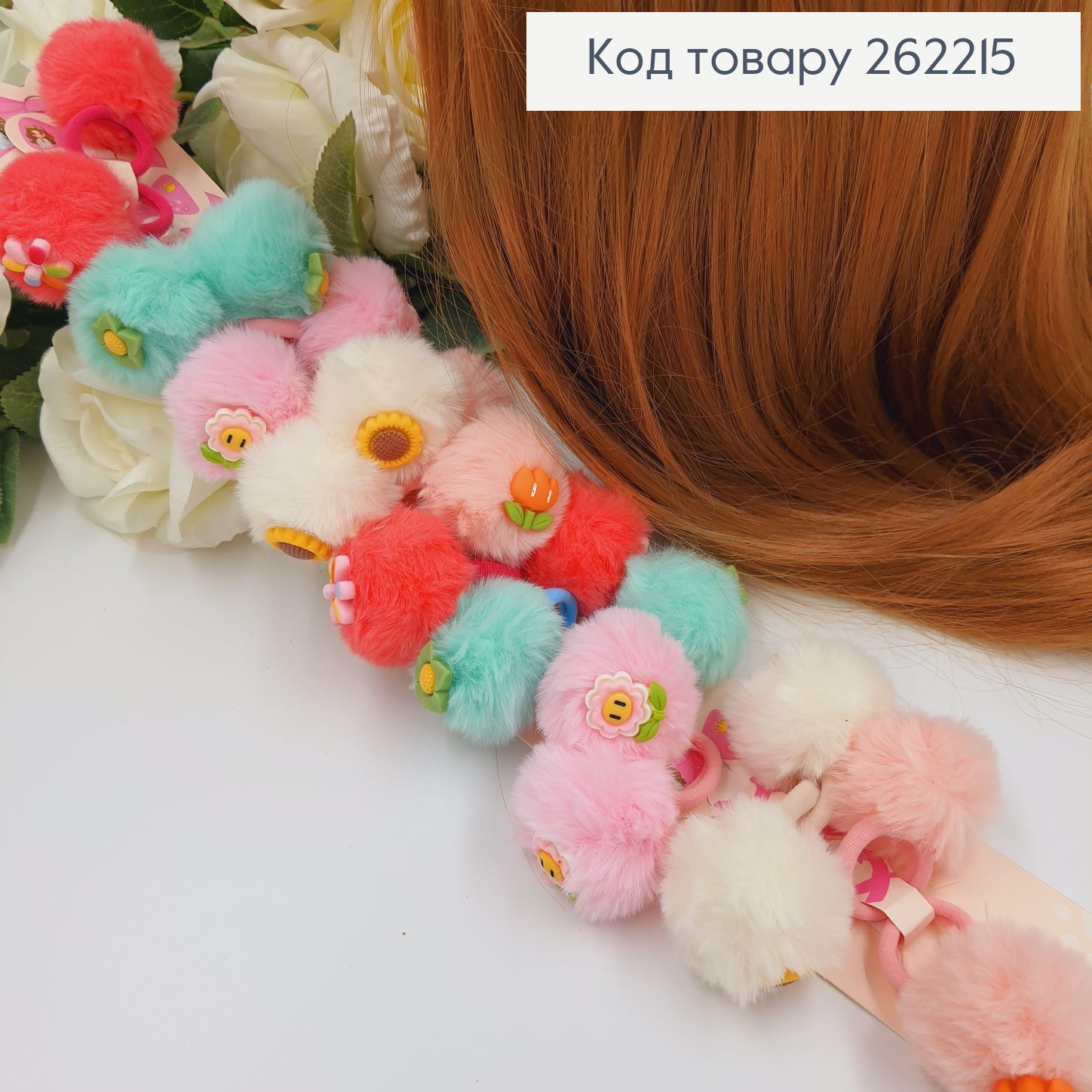 Набор резинок (20шт), "Цветок" с Пушистиком, Пастельные цвета, резинка 3,5см, цветок 2,8см 261380 фото