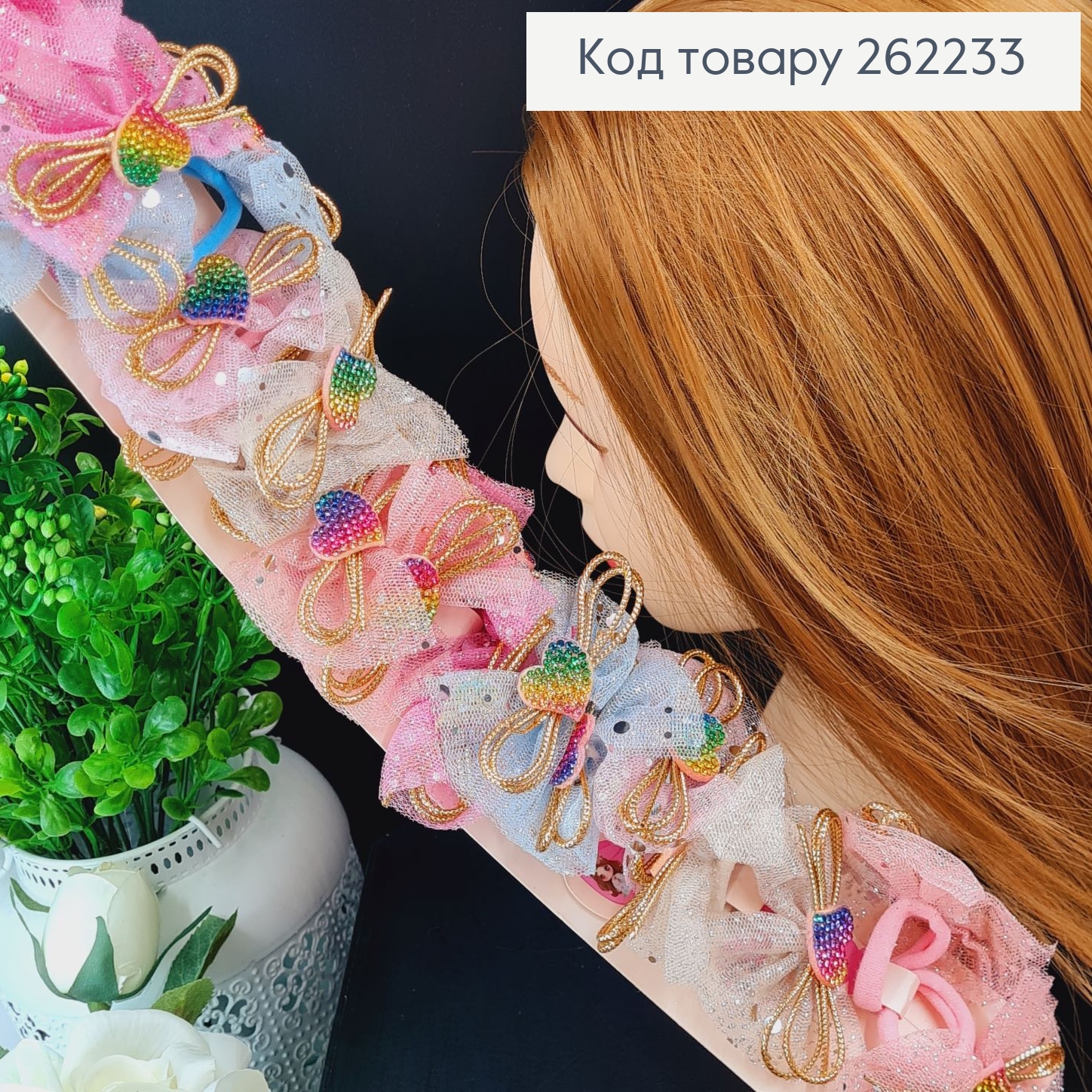Набор резинок (20шт), "Бабочки" с жемчужинами, пастельные цвета, резинка 3см, бабочки 4*3см. 261382 фото