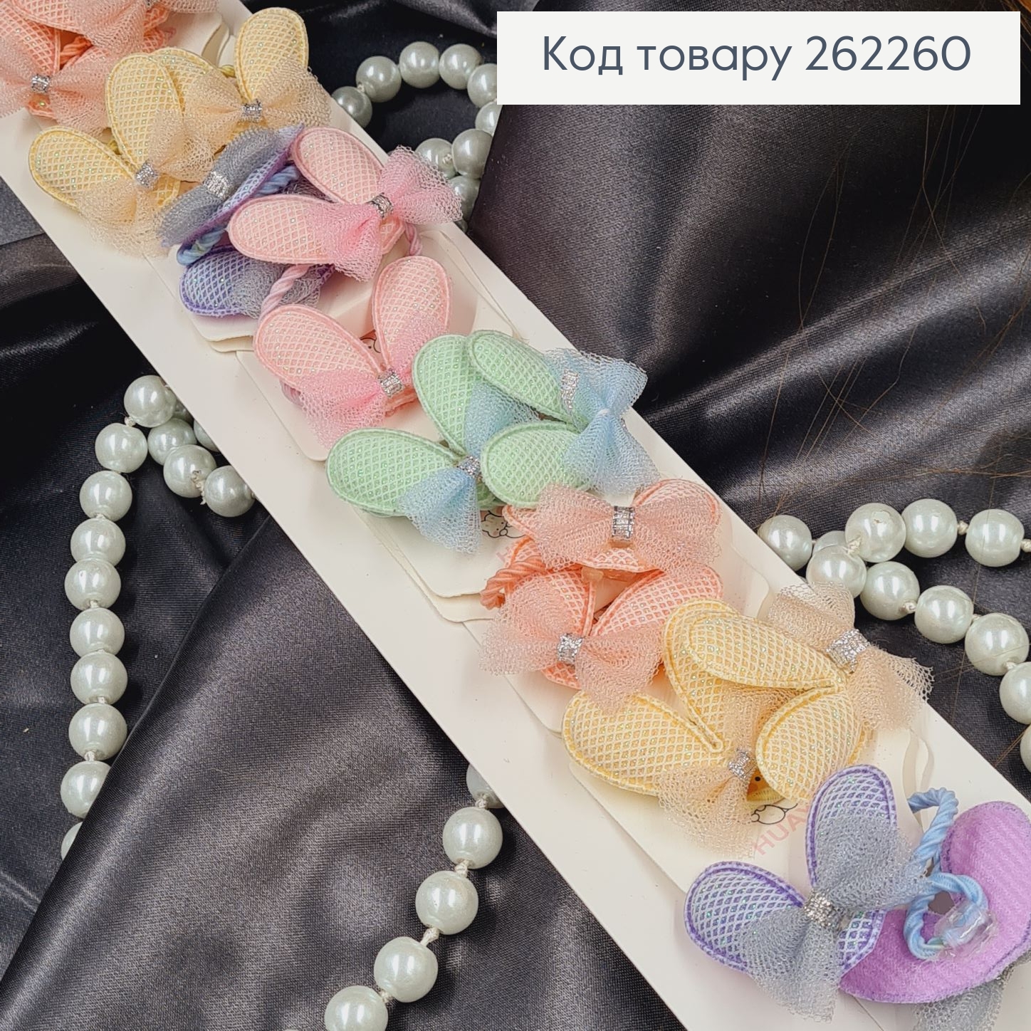 Набор резинок (20шт), "Бабочки" с жемчужинами, пастельные цвета, резинка 3см, бабочки 4*3см. 261382 фото