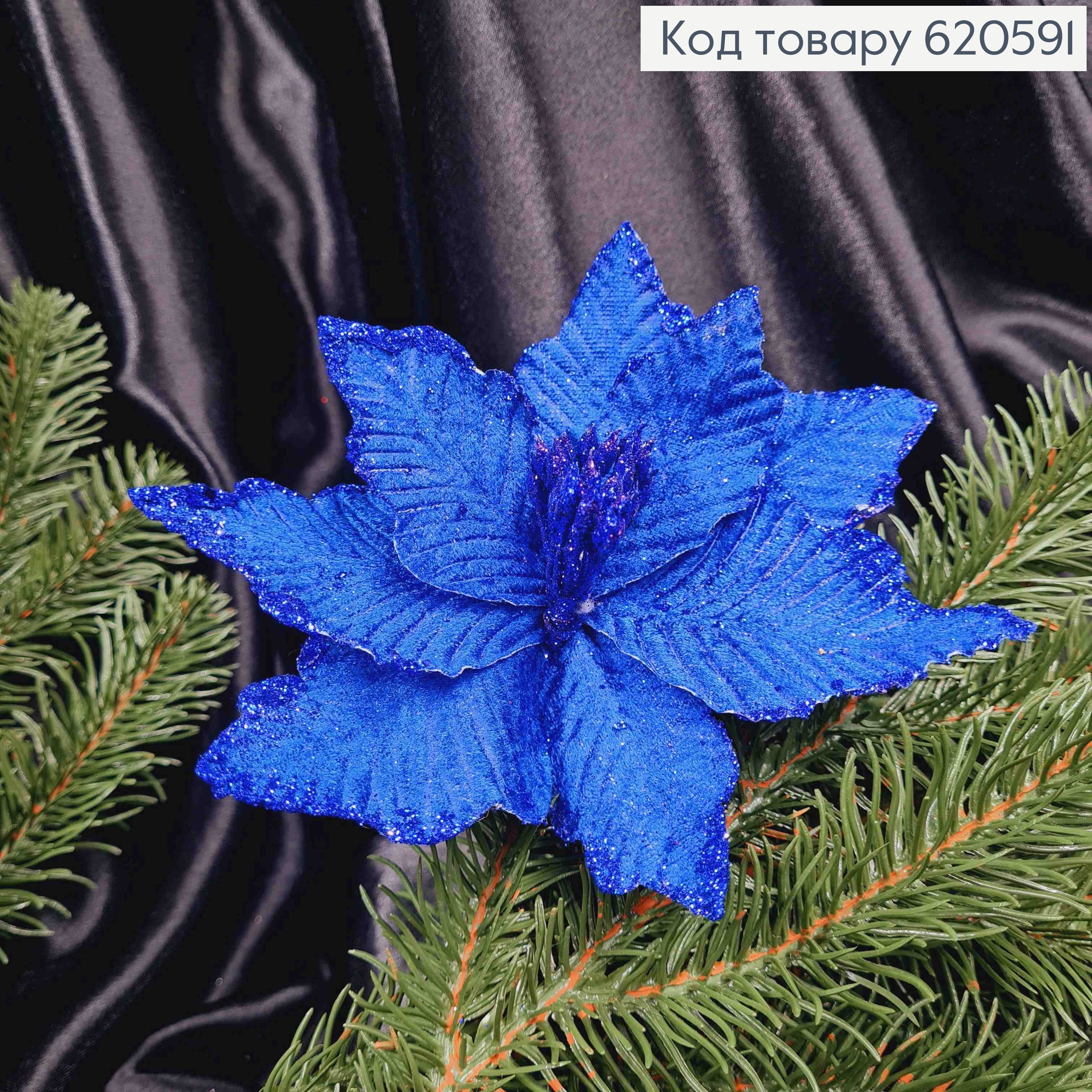 "Рождественник", Цветок Пуансетия СИНЯЯ +БЛЕСК , диам,16-17 см на металл., дл.10см