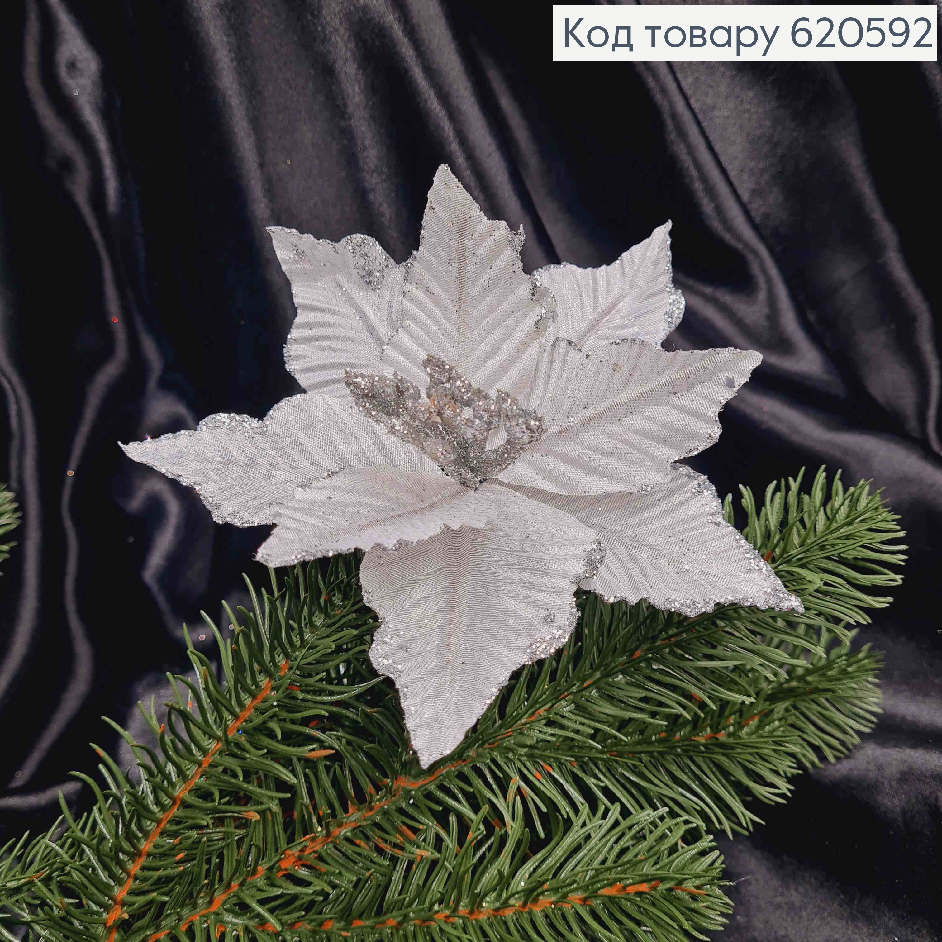 "Рождественник", Цветок Пуансетия СЕРЕБРЯНА, диам.16-17 см на стержне,дл.10см
