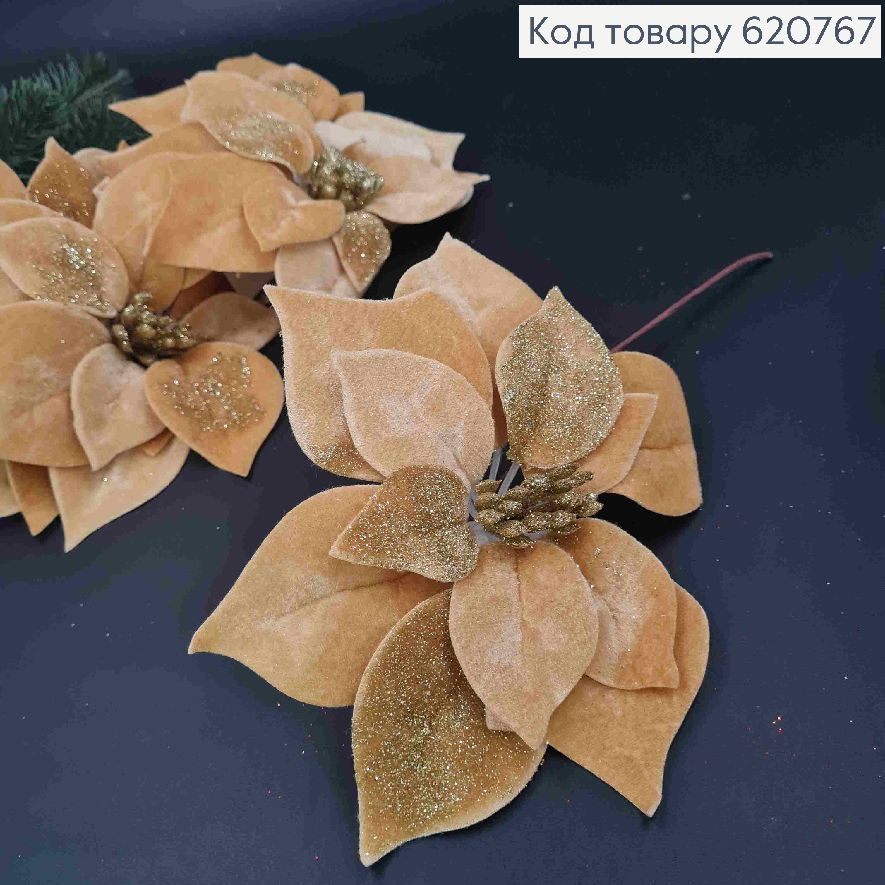 "Рождественник", цветок Пуансетия ЗОЛОТАЯ+БЛЕСК, бархатная, диам. 20см на металл., дл.22см