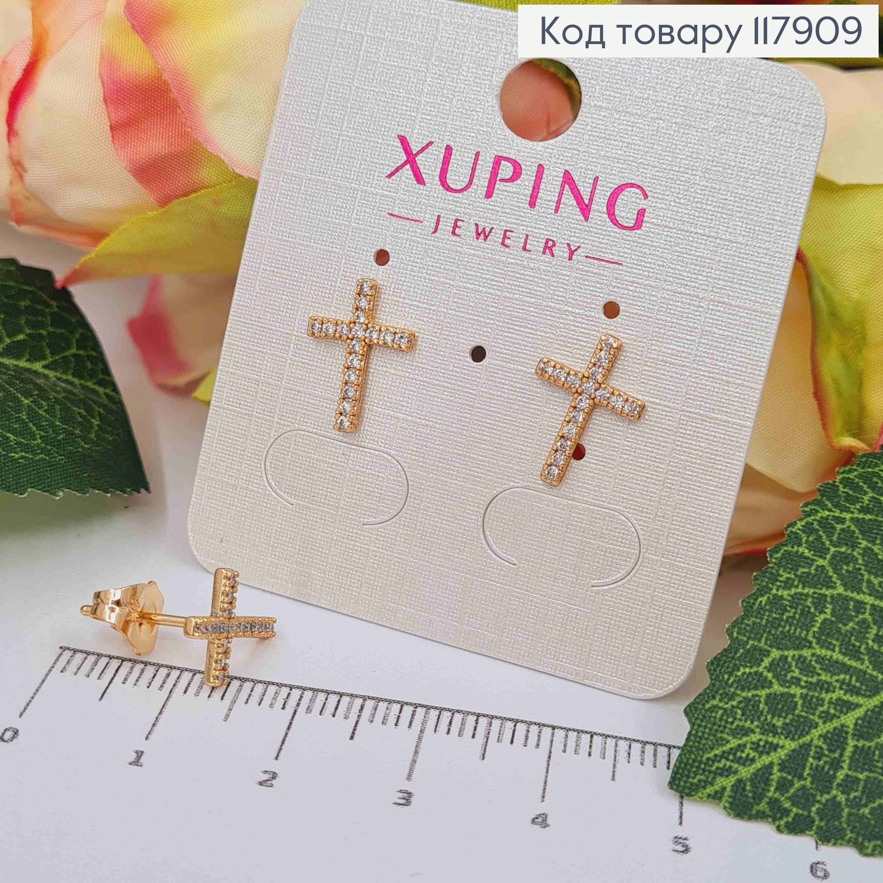 Серьги гвозди "Кресты" украшены камешками, 1,3*0,9см, Xuping 18K