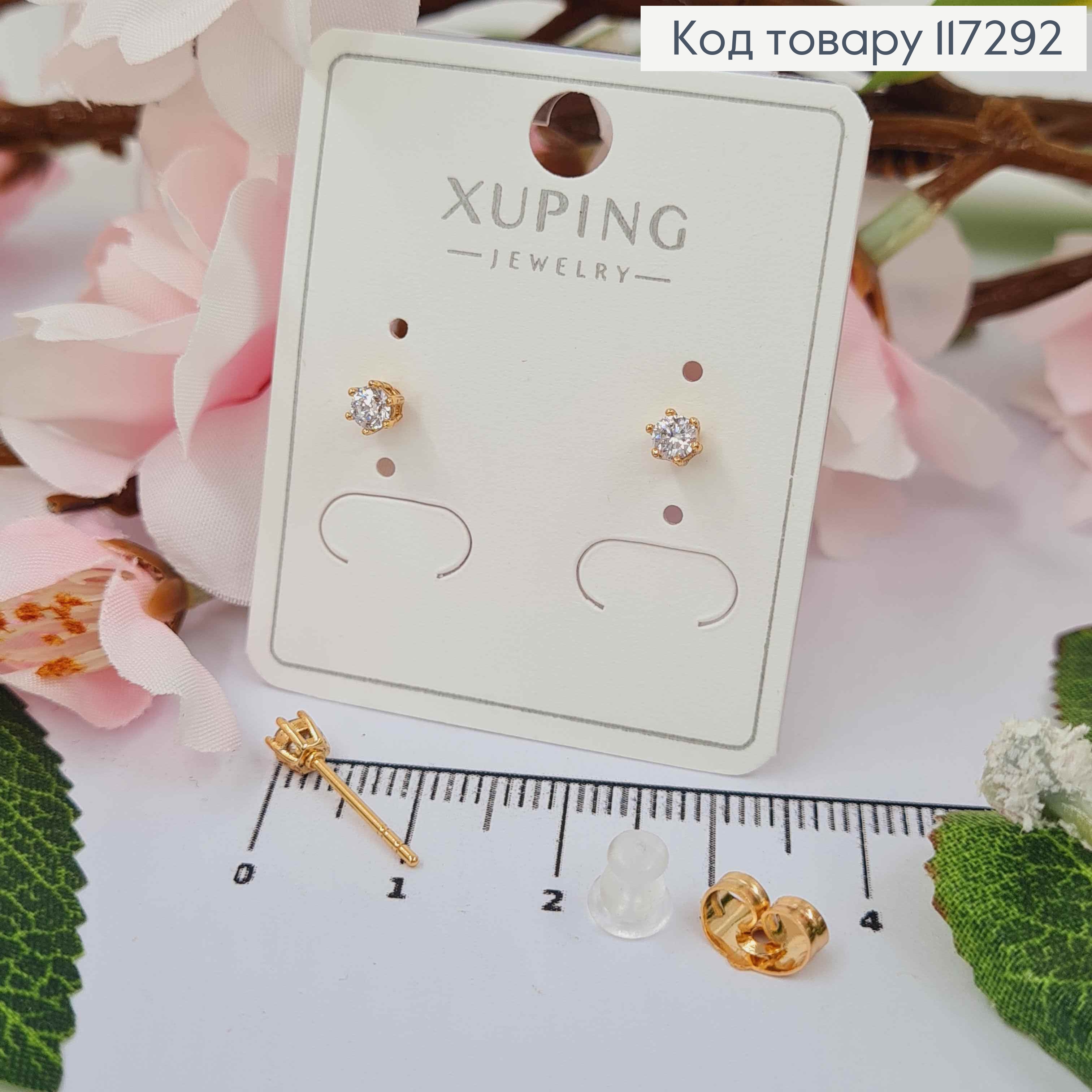 Серьги гвозди, с Белым блестящим камешком 3,5мм, Xuping 18К.