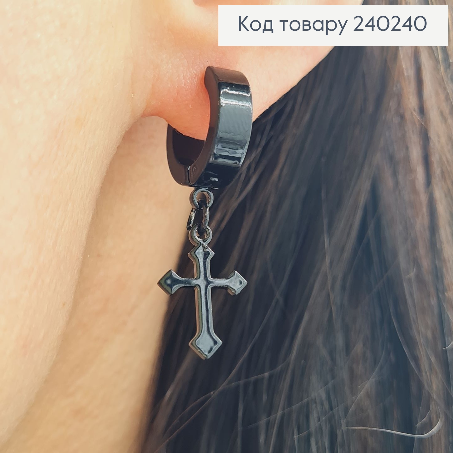 СЕРЬГА кольцо 1,2см Крестик черного цвета 1,3*0,9см, Stainless Steel