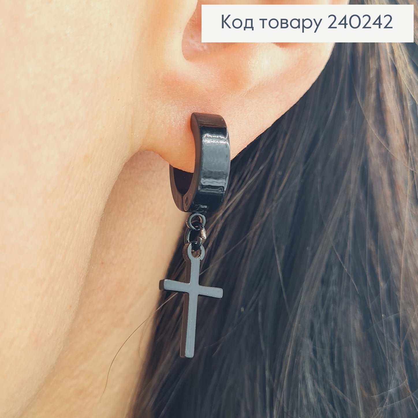 СЕРЬГА кольцо 1,2см Крестик черного цвета 1,5*1см, Stainless Steel