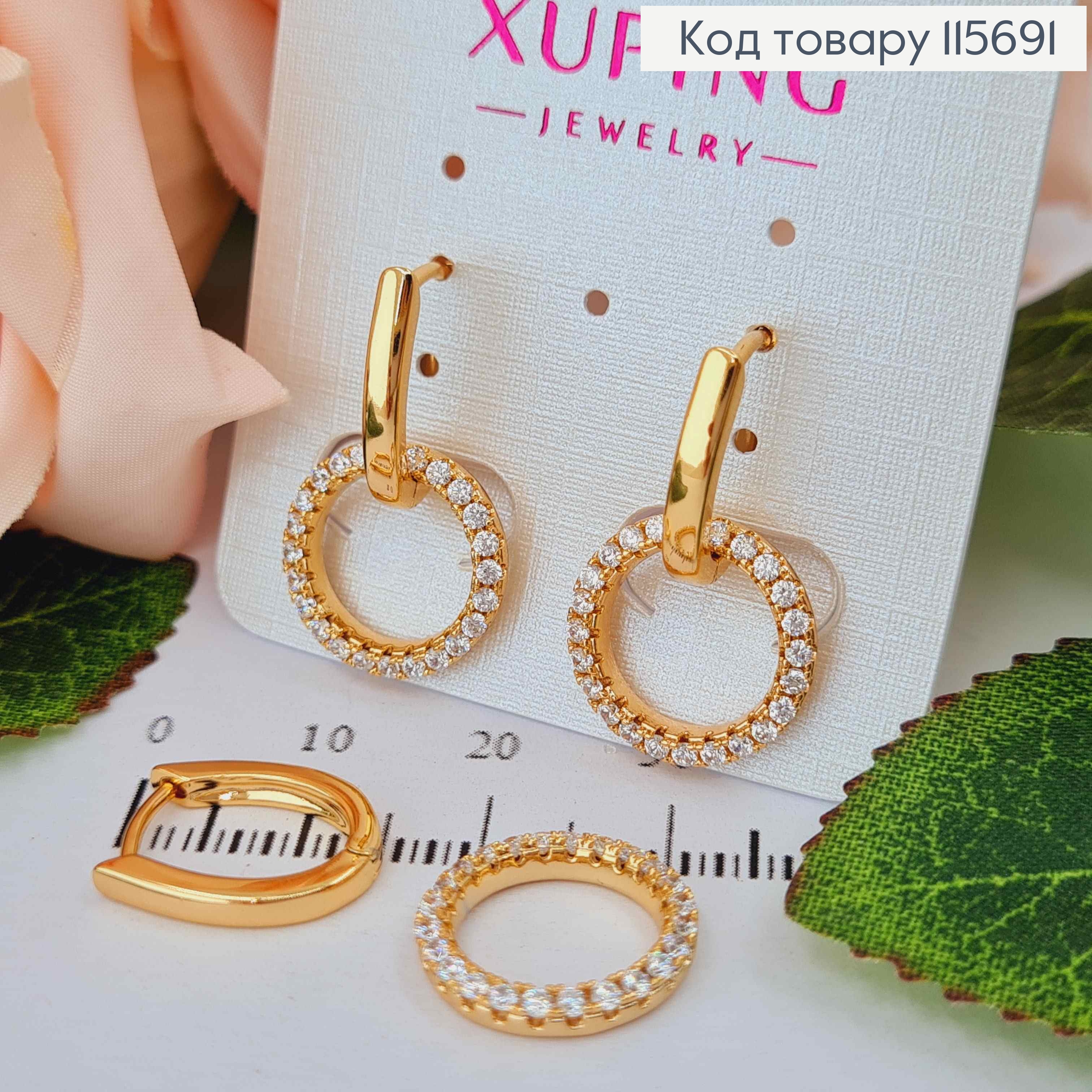 Серьги кольца с подвесными цепочками, размер 1,1+8см, Xuping 18K 110249 фото