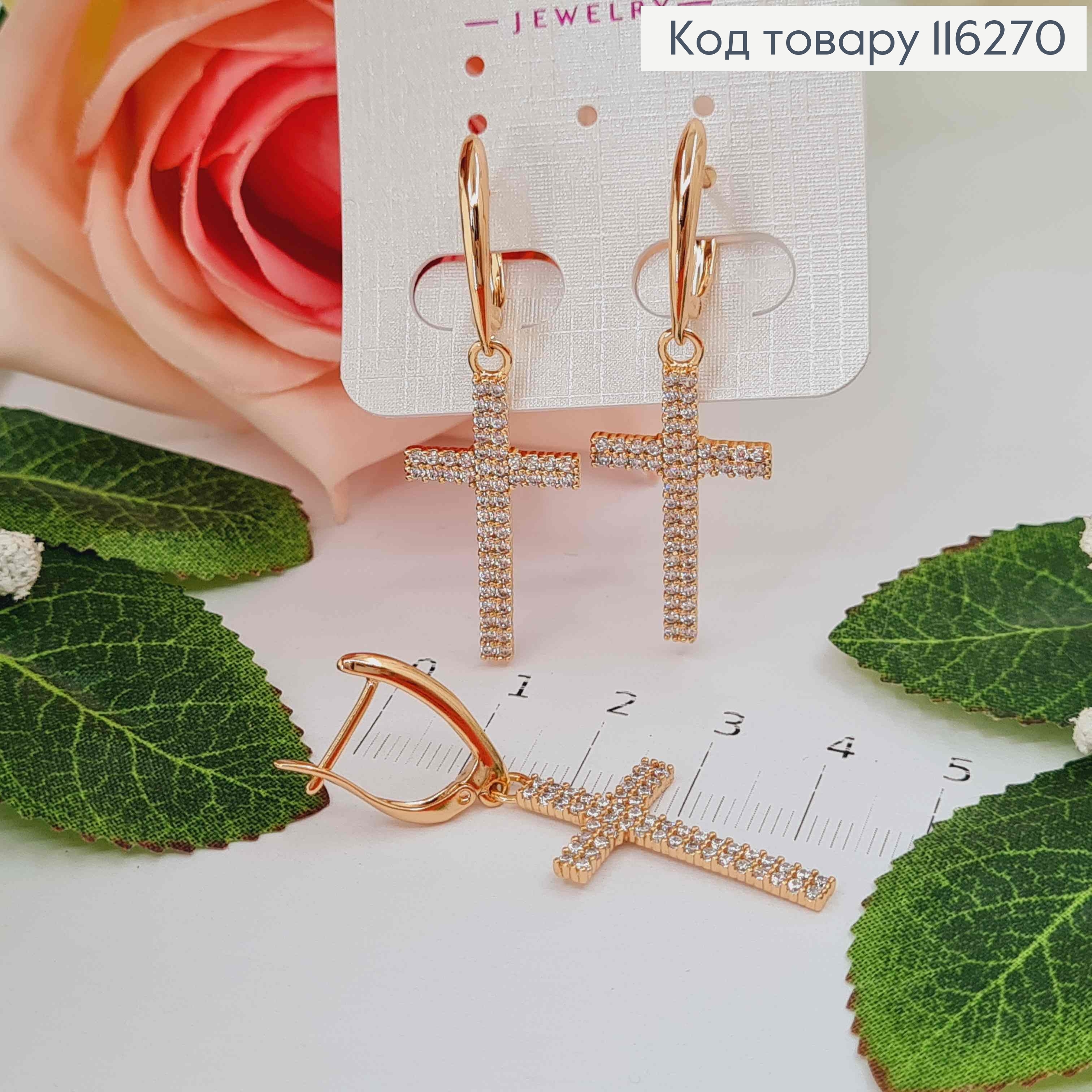 Серьги 1,3см, с подвеской Крестиками в камнях 4см, англ. застежка, Xuping 18K