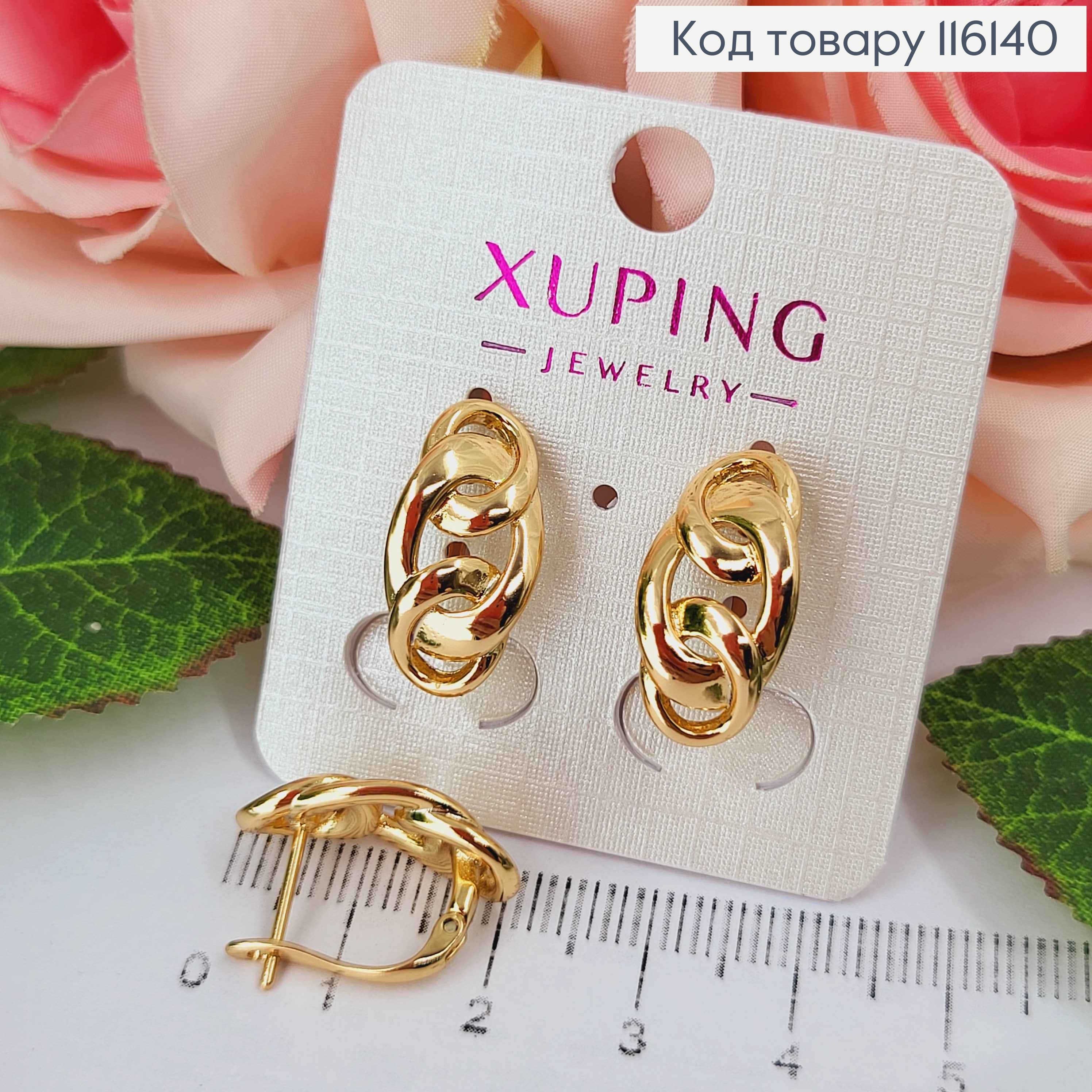 Серьги кольца с подвесными цепочками, размер 1,1+8см, Xuping 18K