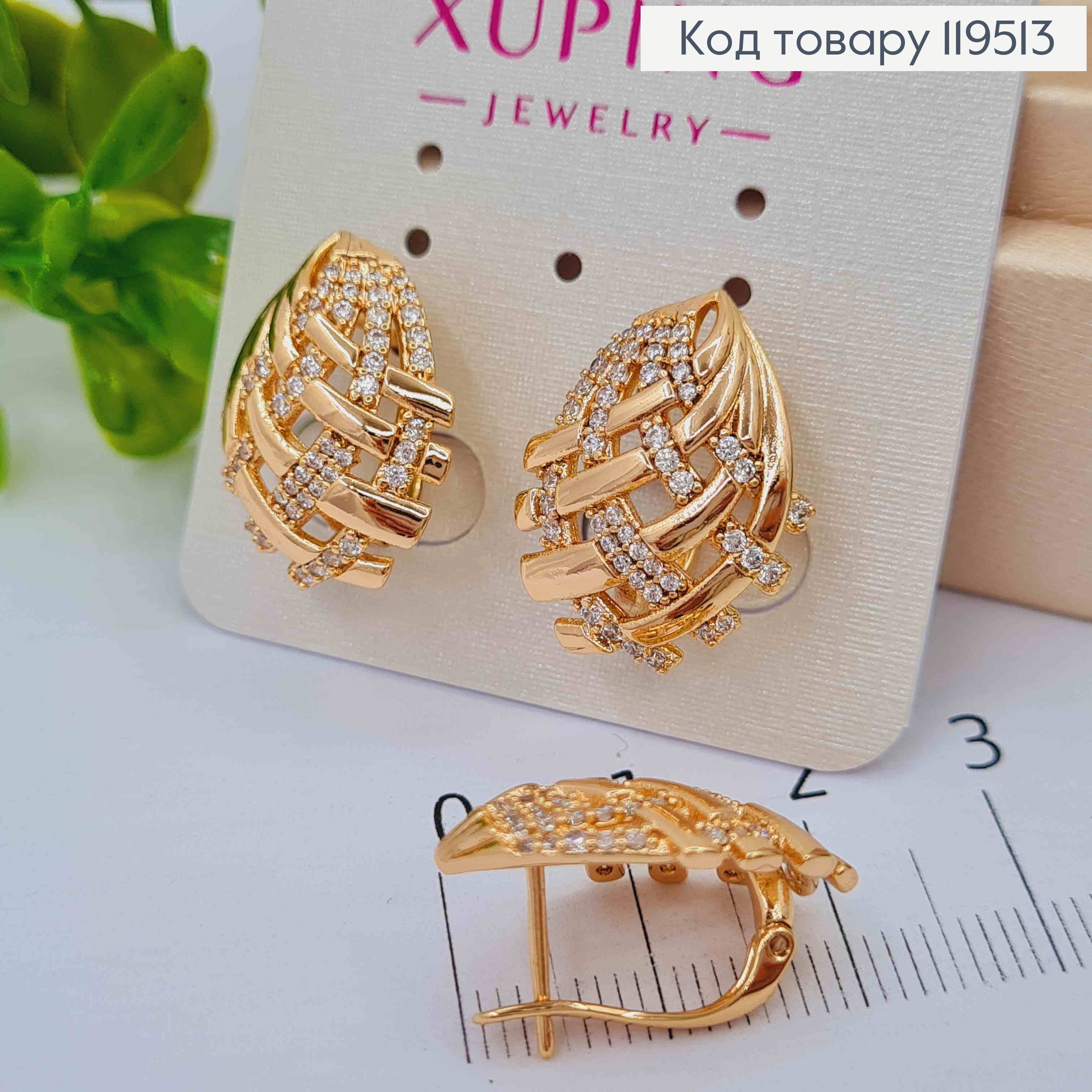 Серьги "Х" украшены Блестящими камешками, длина 1,6см, английская застежка, Xuping 18К. 110206 фото