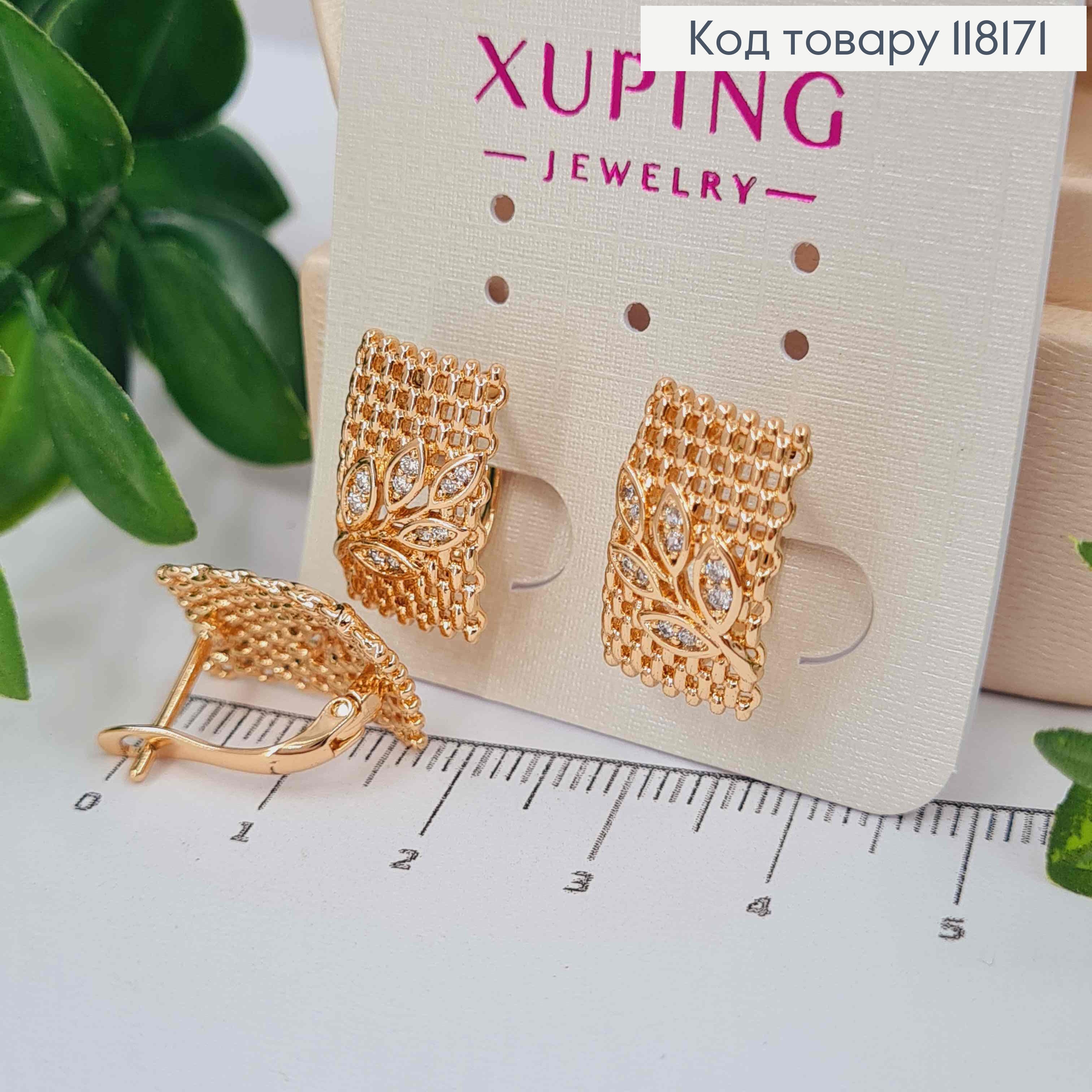 Серьги прямоугольные Фактурные, длина 1,7см, английская застежка, Xuping 18К 110203 фото