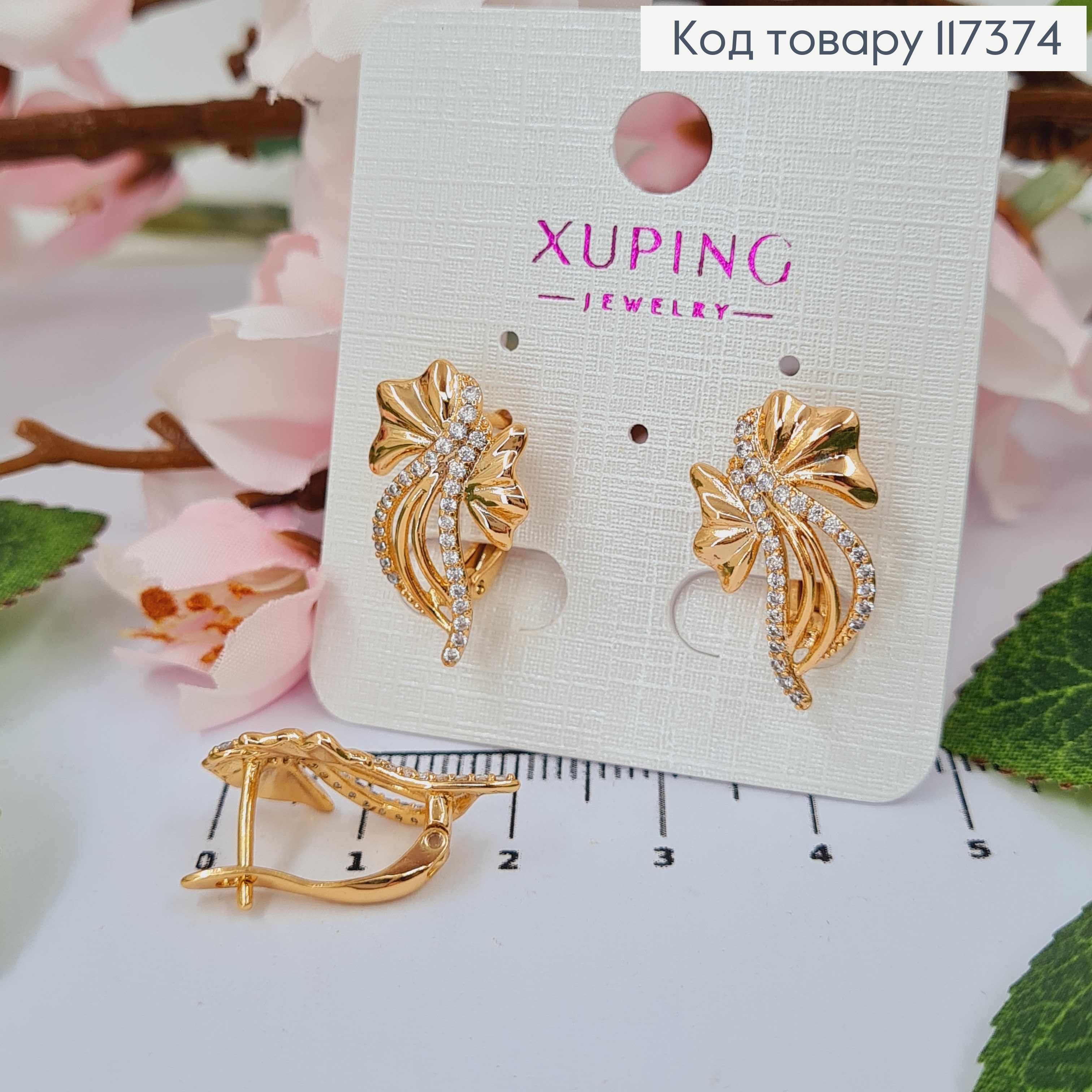 Серьги "Бантики" с блестящими камешками, длина 2,2см, англ застежка, XUPING 18K