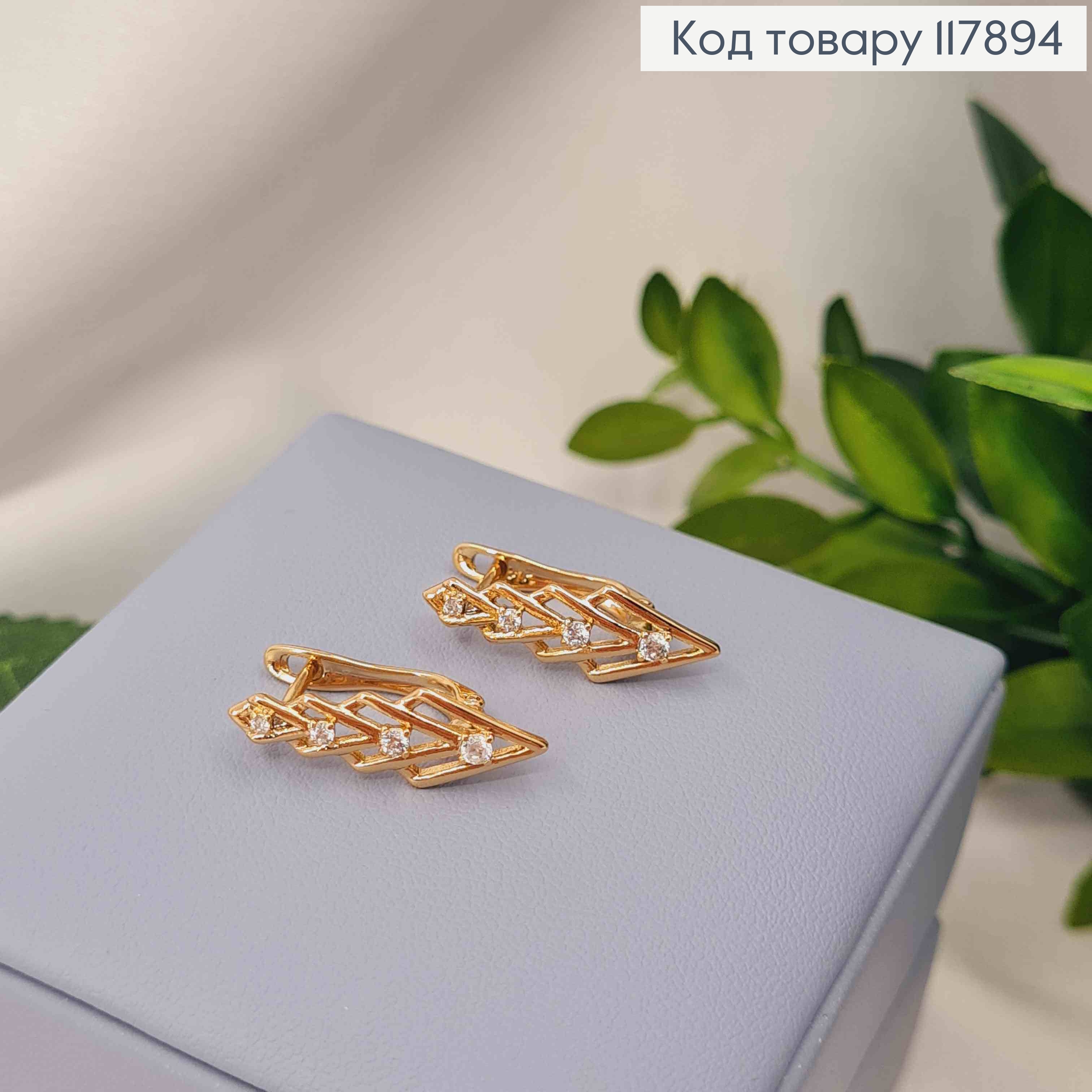 Серьги "Стрели" украшены Блестящими камешками, длина 2,6см, английская застежка, Xuping 18К. 110201 фото