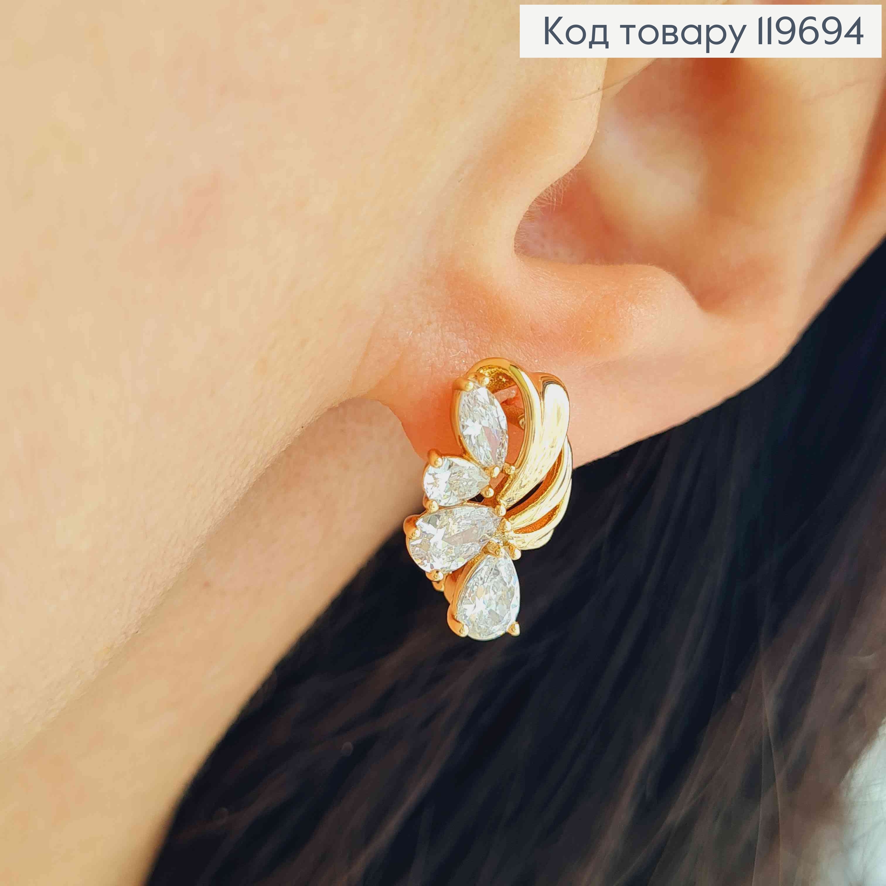 Серьги "Стрели" украшены Блестящими камешками, длина 2,6см, английская застежка, Xuping 18К. 110201 фото